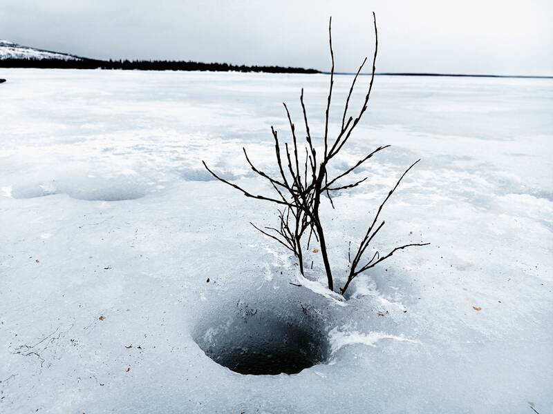 Всем привет! Всё ближе приближение весны и всё заметнее её дыхание. Солнце уже почти не заходит за горизонт, а лёгкие ночные заморозки, лишь едва-едва «схватывают» небольшую корочку. В лесах, оставшийся снег, тает буквально «на глазах», с каждым днём обнажая всё более обширные участки зелёного покрывала. На озере постепенно образуются обширные забереги, наполняемые мутной талой водой, бегущей из просыпающейся тундры. Лёд на озере окончательно потерял свою крепкую зимнюю структуру и даже на ощупь кажется каким-то тёплым. Остаётся ловить редкие моменты попасть на подлёдную рыбалку. Скоро зимний ящик отправится на покой до следующего сезона и в ход пойдут совсем другие снасти и совсем другая рыбалка.