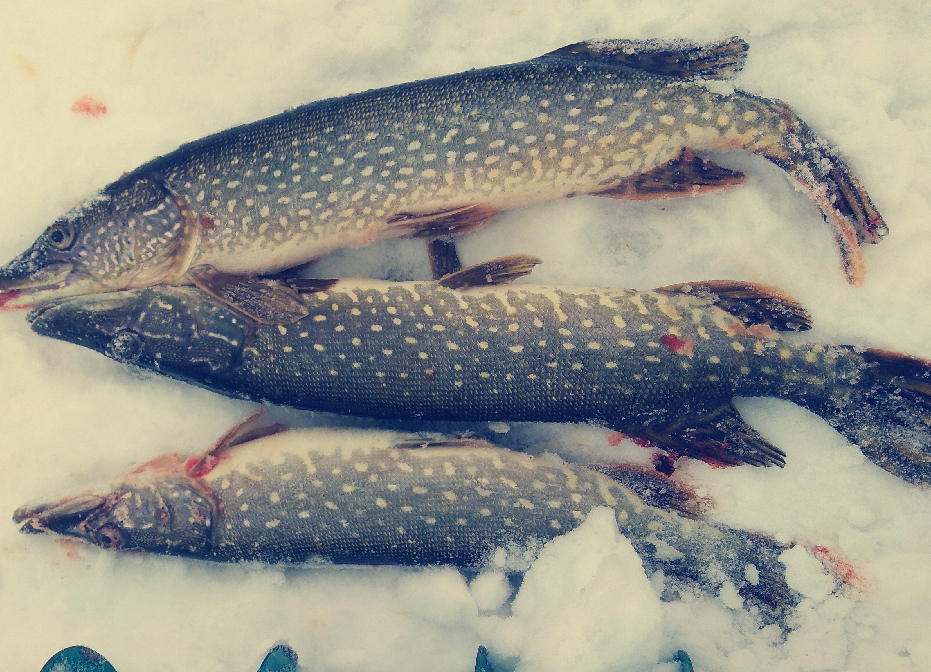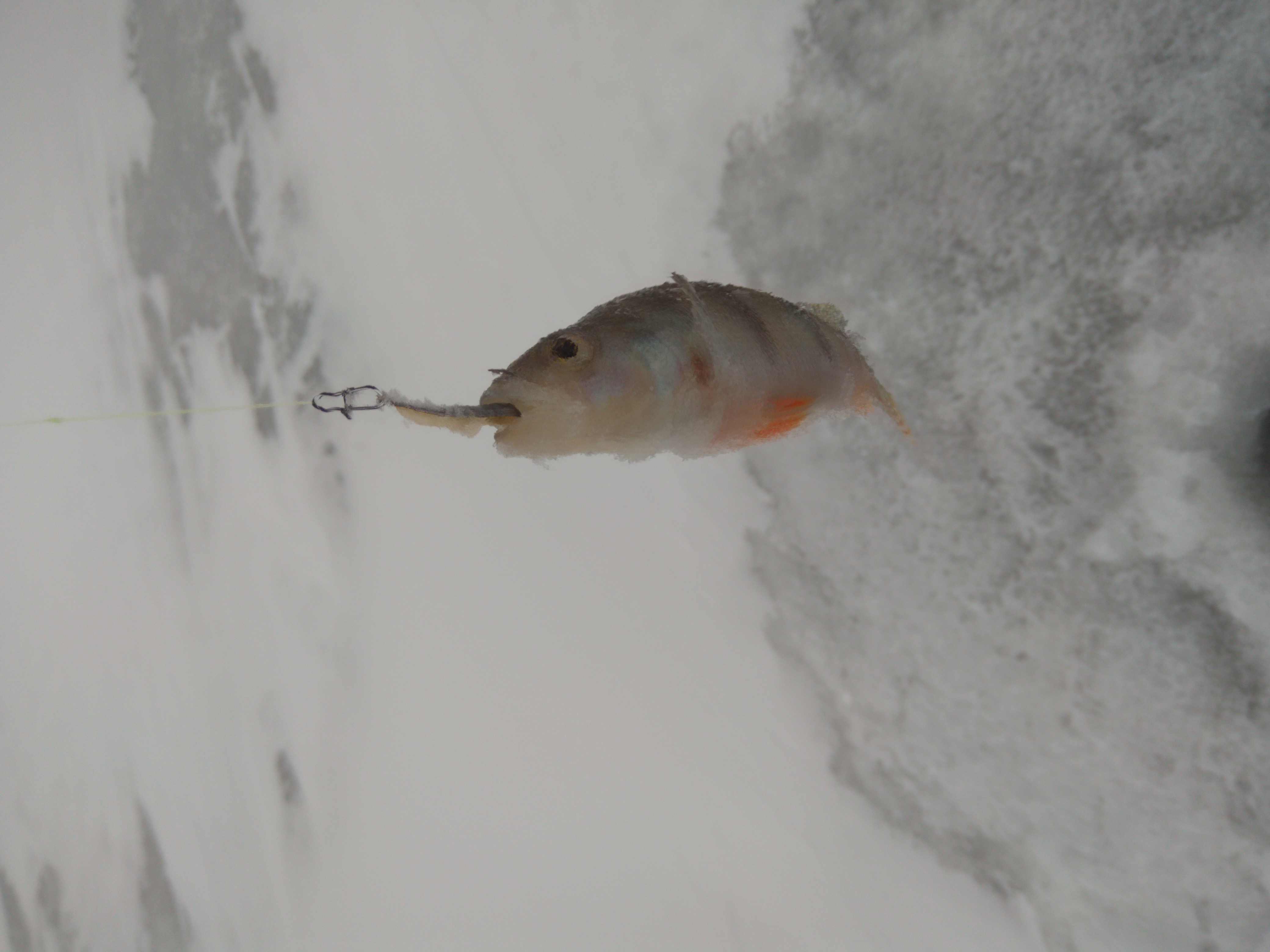 Сверлю сразу около 5 лунок, чтобы потом не пугать осторожную рыбу. Ловлю начал с расстановки поставушк. Да забыл сказать, разрешено 1 активная снасть + 2 поставушки, можно доплатить на поставушки - 1 шт. - 500р и увеличить количество, я так и сделал.