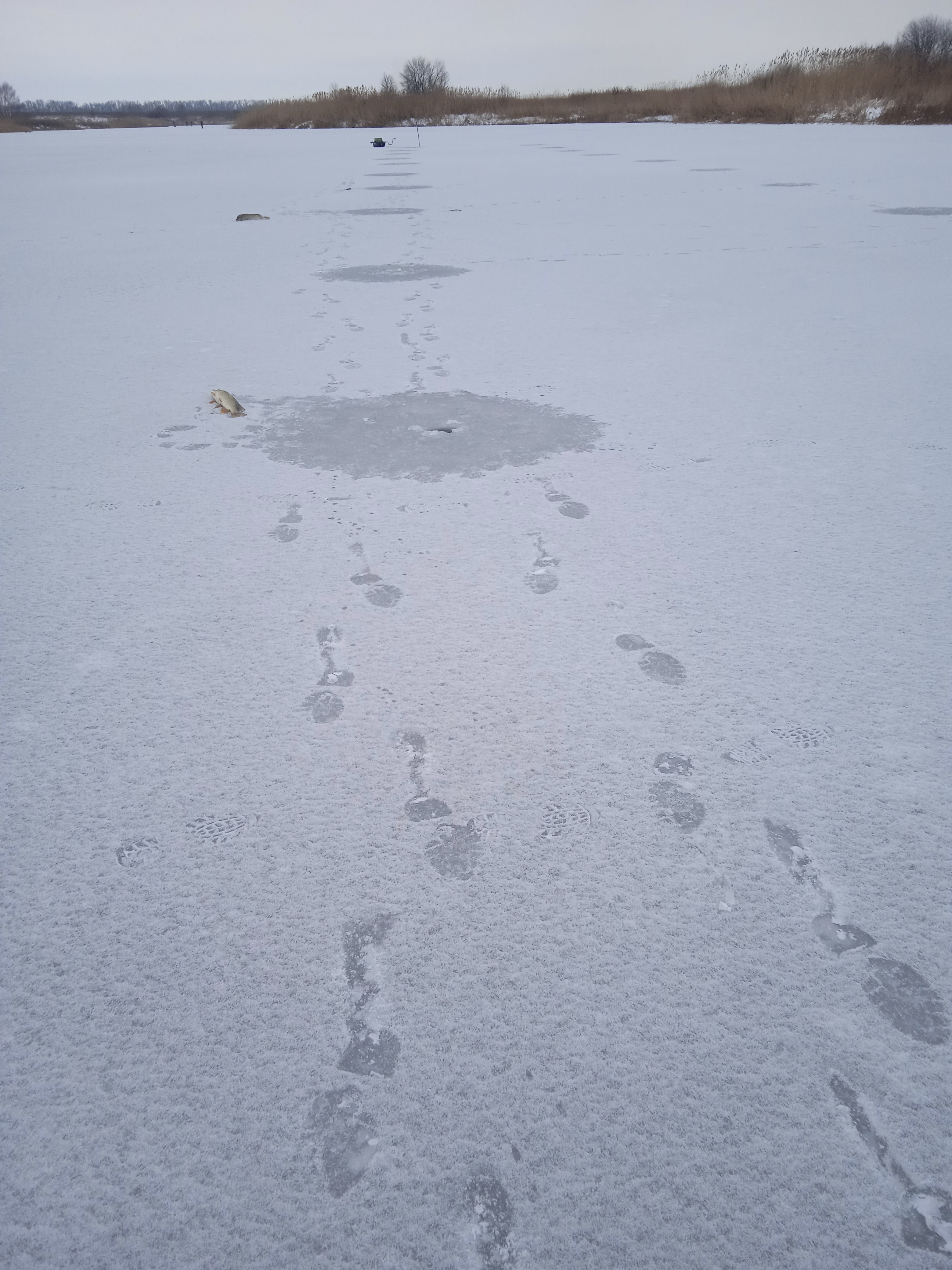 Лед везде уверенный 7 см но правда снежный