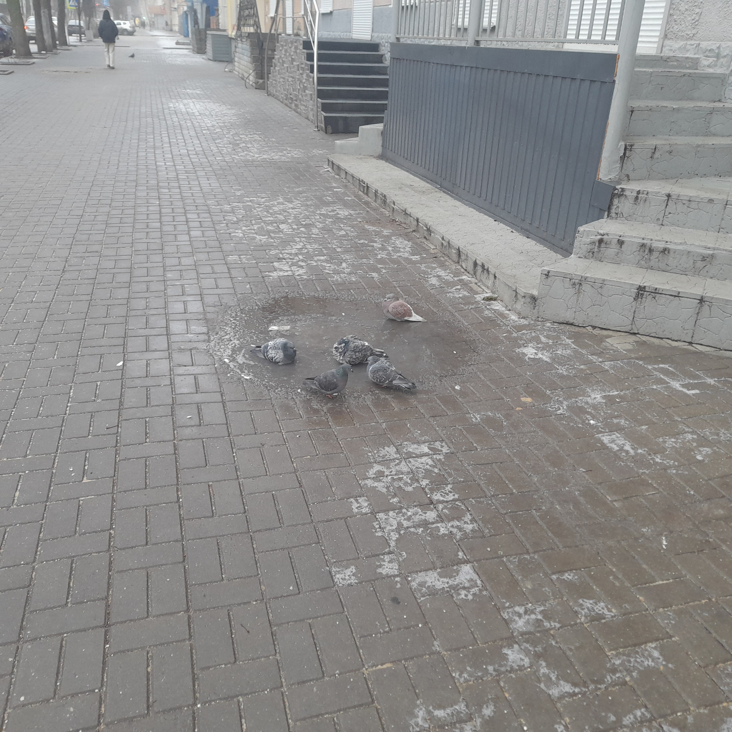 У Калугина  в своё время было написано, что если вороны так делают - это к большому теплу. Интересно, а голуби тоже?  Во всяком случае,  потом быстро потеплело, около +1, уже не так скользко, как вчера