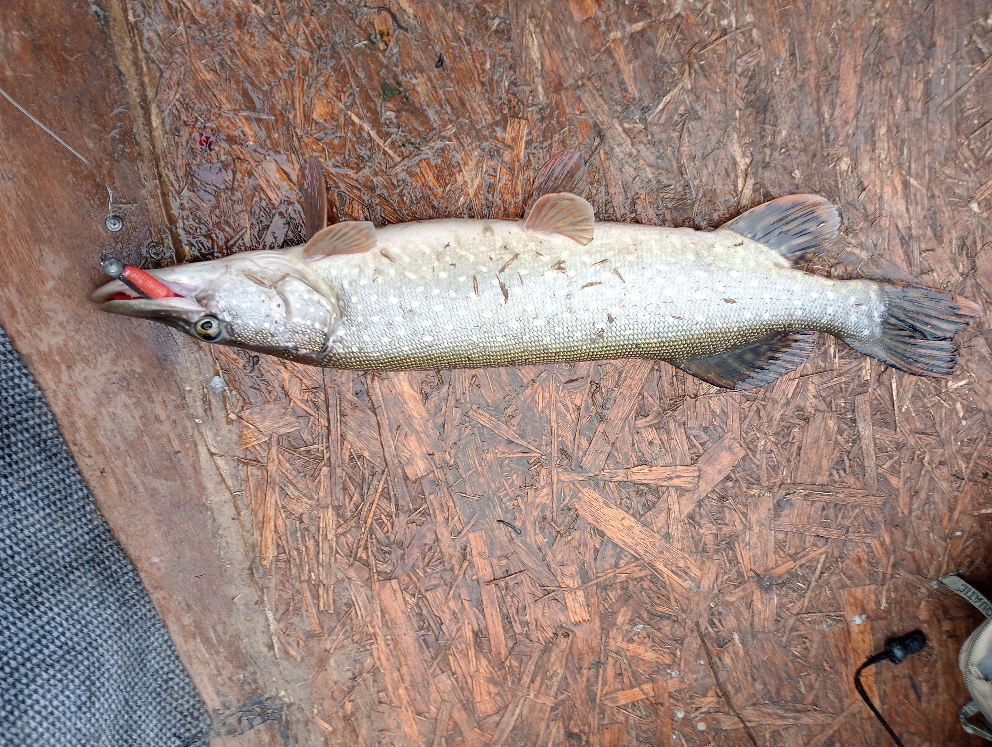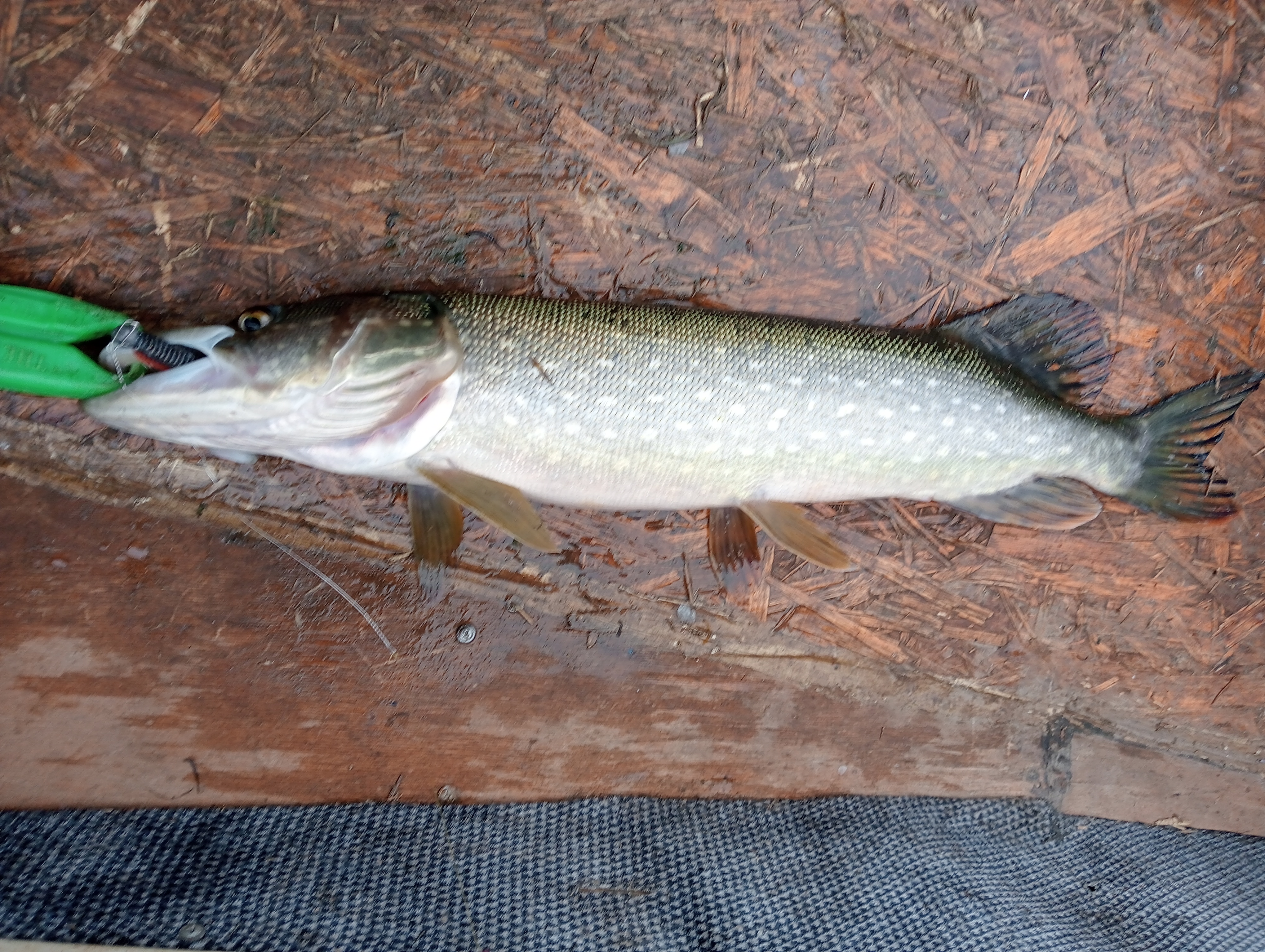 На всекий случай проверял и глубины, нет там никого, вся щука у берегов, на свалах 3-4-5м. Отозвалась только на резину, железяки и ратлины игнорировала. А мамочка на 4,4 взяла на глубина 3,2м.