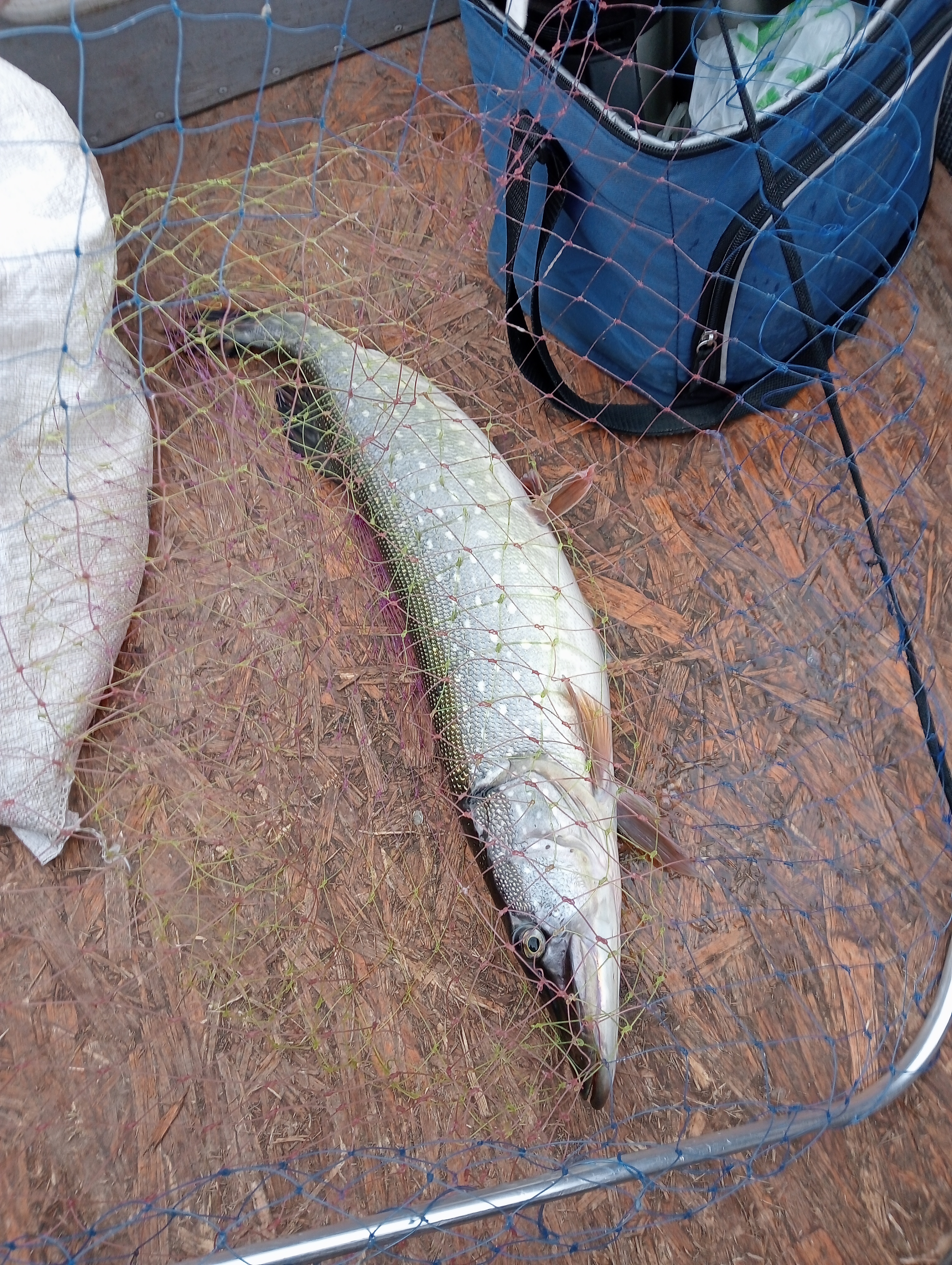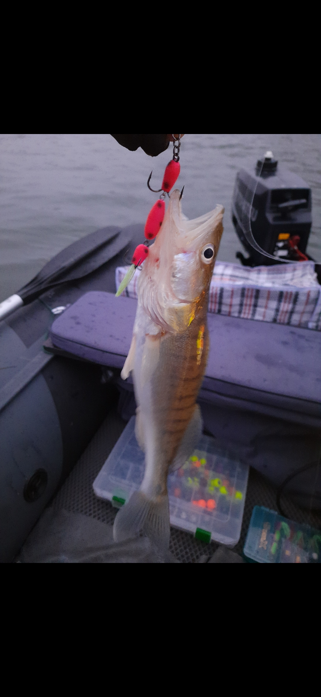 Юра, дорогу быстрее едущим надо уступать! А тормознули бы и спросили, то быстрее прибыли на место. А то я уже выплывал, а вы только подъехали. По рыбе. Не клевало, как говорили все. Всякое железо и буратинки вообще молчали. Работала резина Диамонд 4" коричнево-желтая на 10гр. чебурахе. 5 поклевок, -3 откусаных хвоста и одна в активе. Прям как по заказу семейства на котлеты.