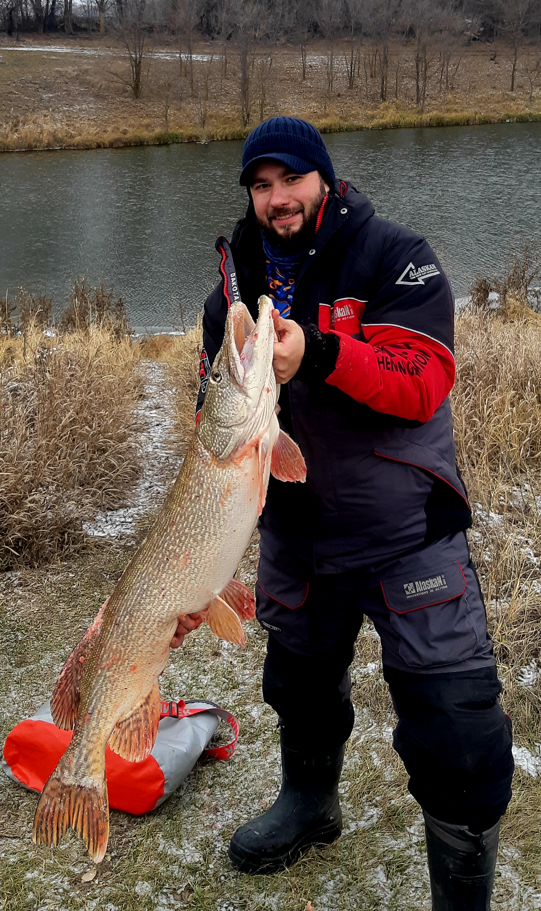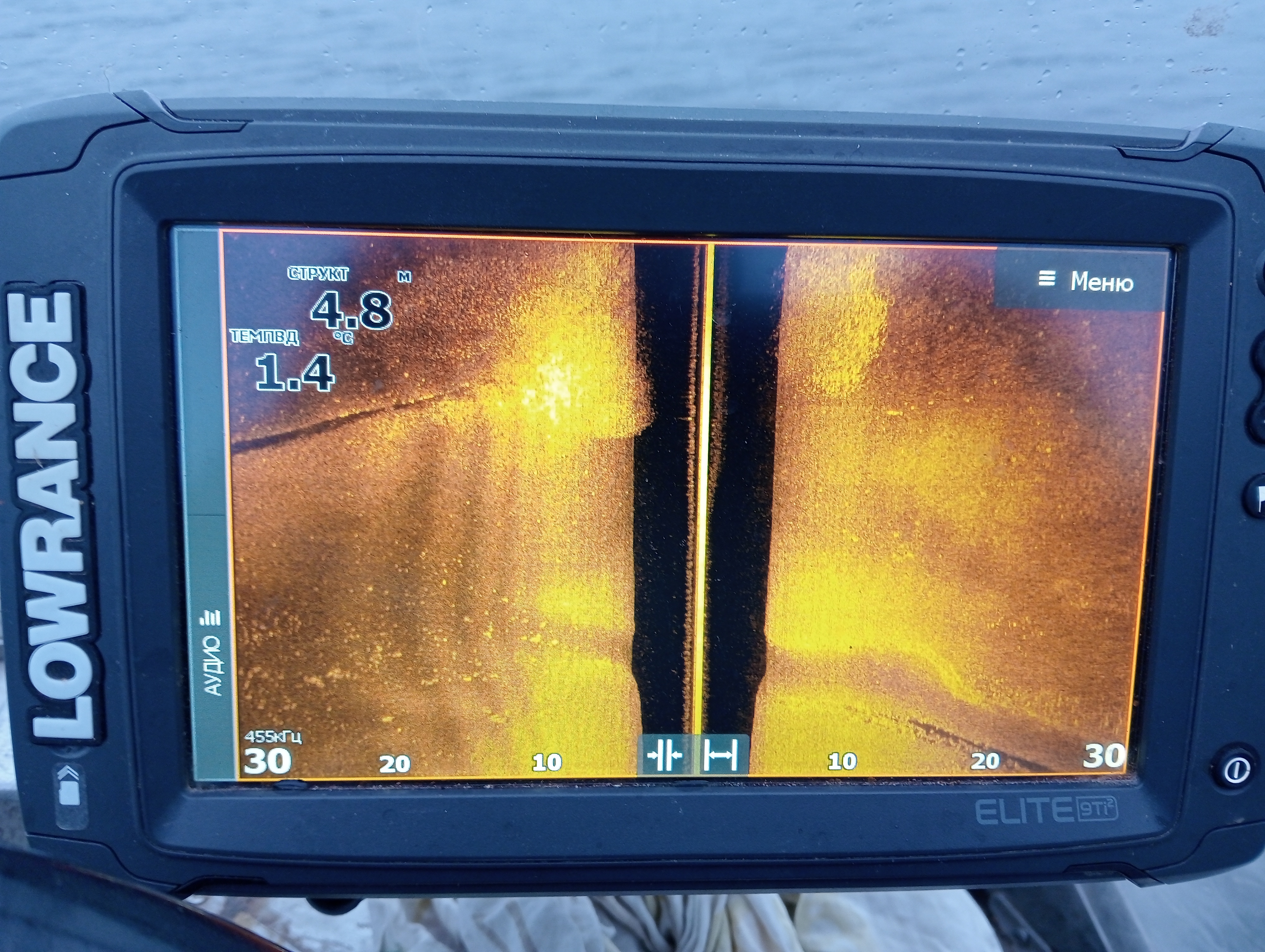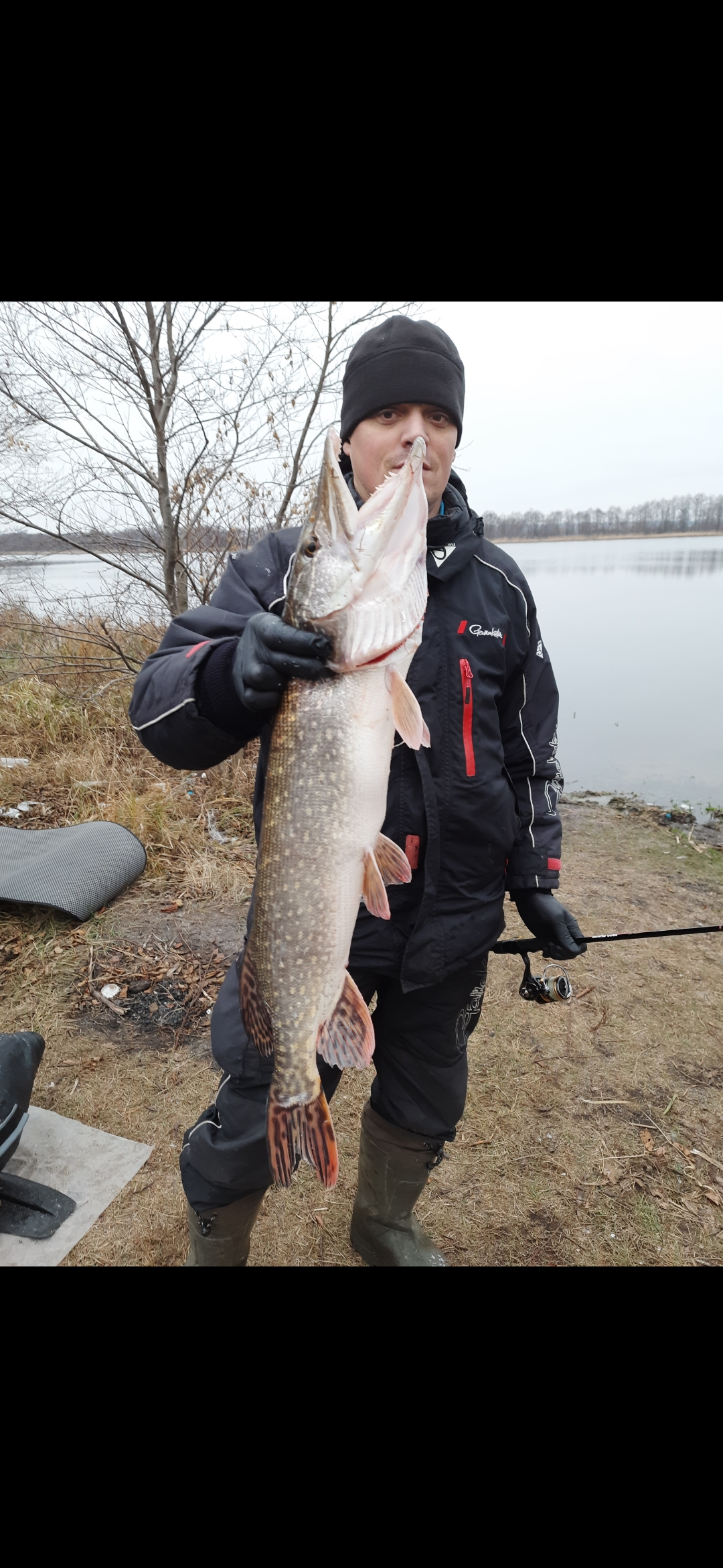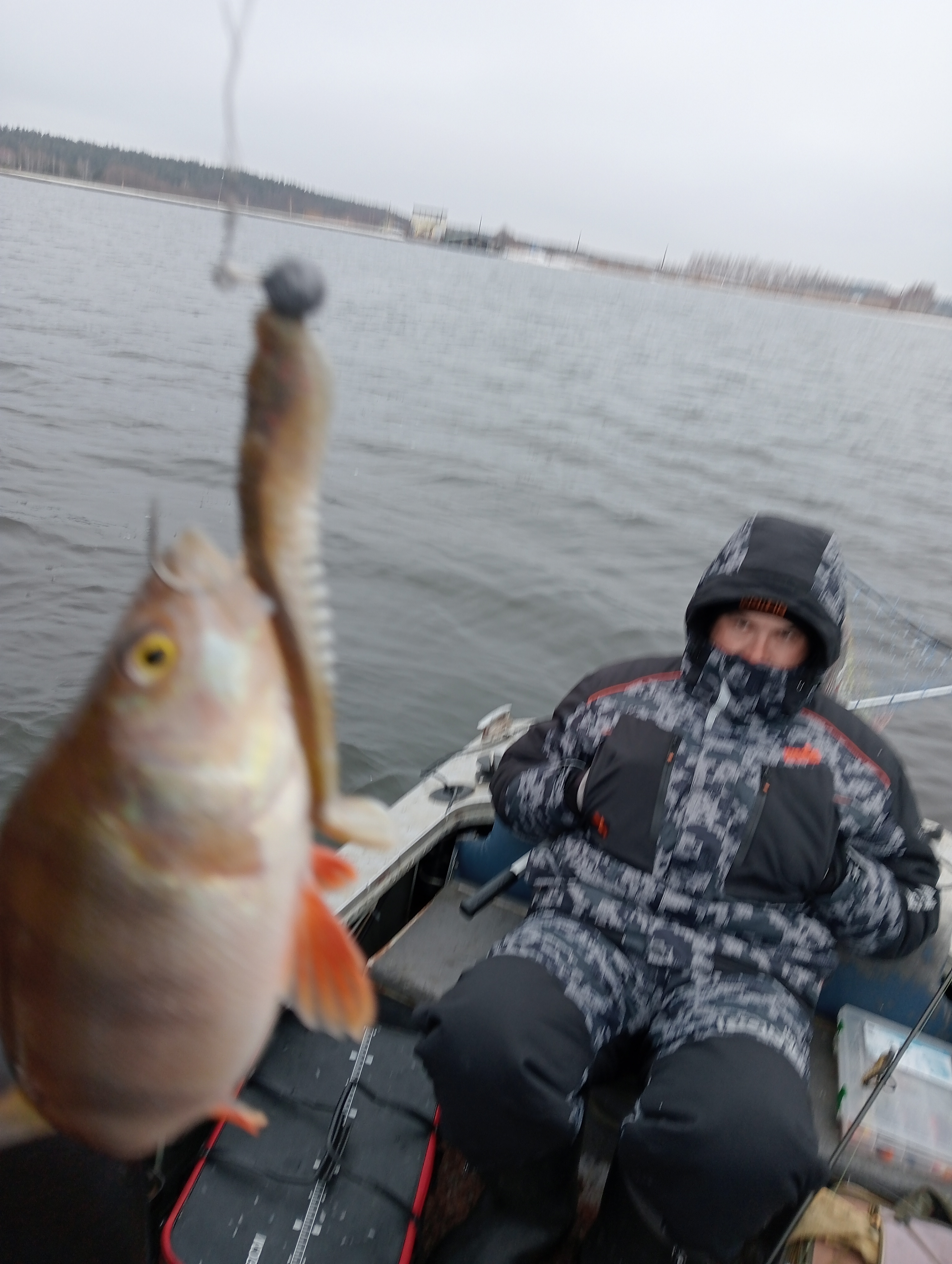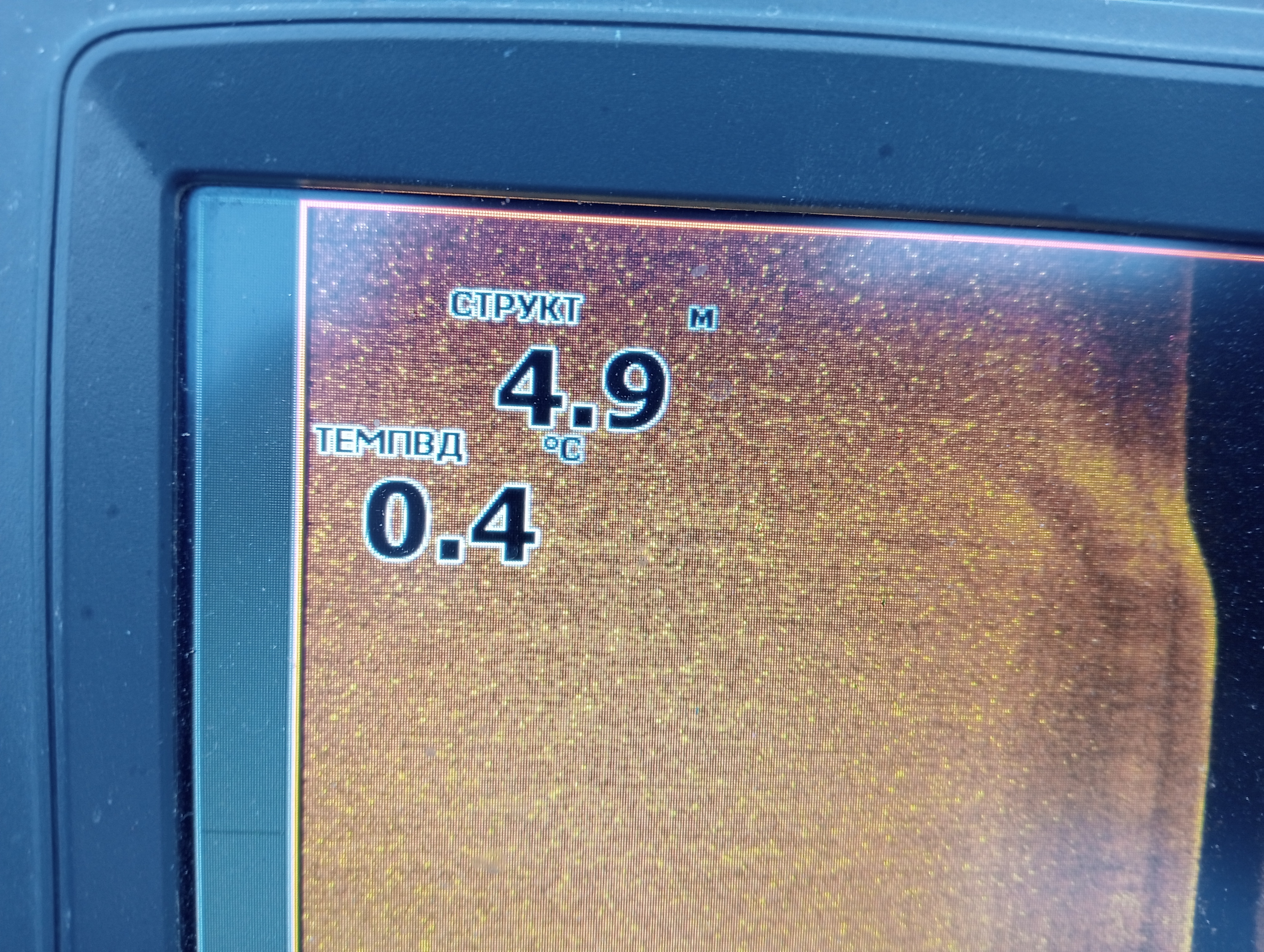 Вроде бы и закрыл уже сезон ,но от предложения сгонять со спином еще разок(пока все не замерзло) не смог отказаться. Торопиться не стали, на воду вышли только в 9. Вода уже, всего +1,6С. Начали с ям. Первый час показал что жора у хищника сегодня не запланировано. Только чешую снял джигом с сазана или большого карася))). Около 10 наконец-то первая щучка проснулась, следом еще и еще. Цвет приманки видимо роли не играл, просто надо было попасть ей под нос. После 11 заморосил дождик и мы решили не испытывать судьбу и делать ноги к дому, т.к. предстояло обратно месить грязь около 10км и не хотелось бы искать трактор, если чо.
