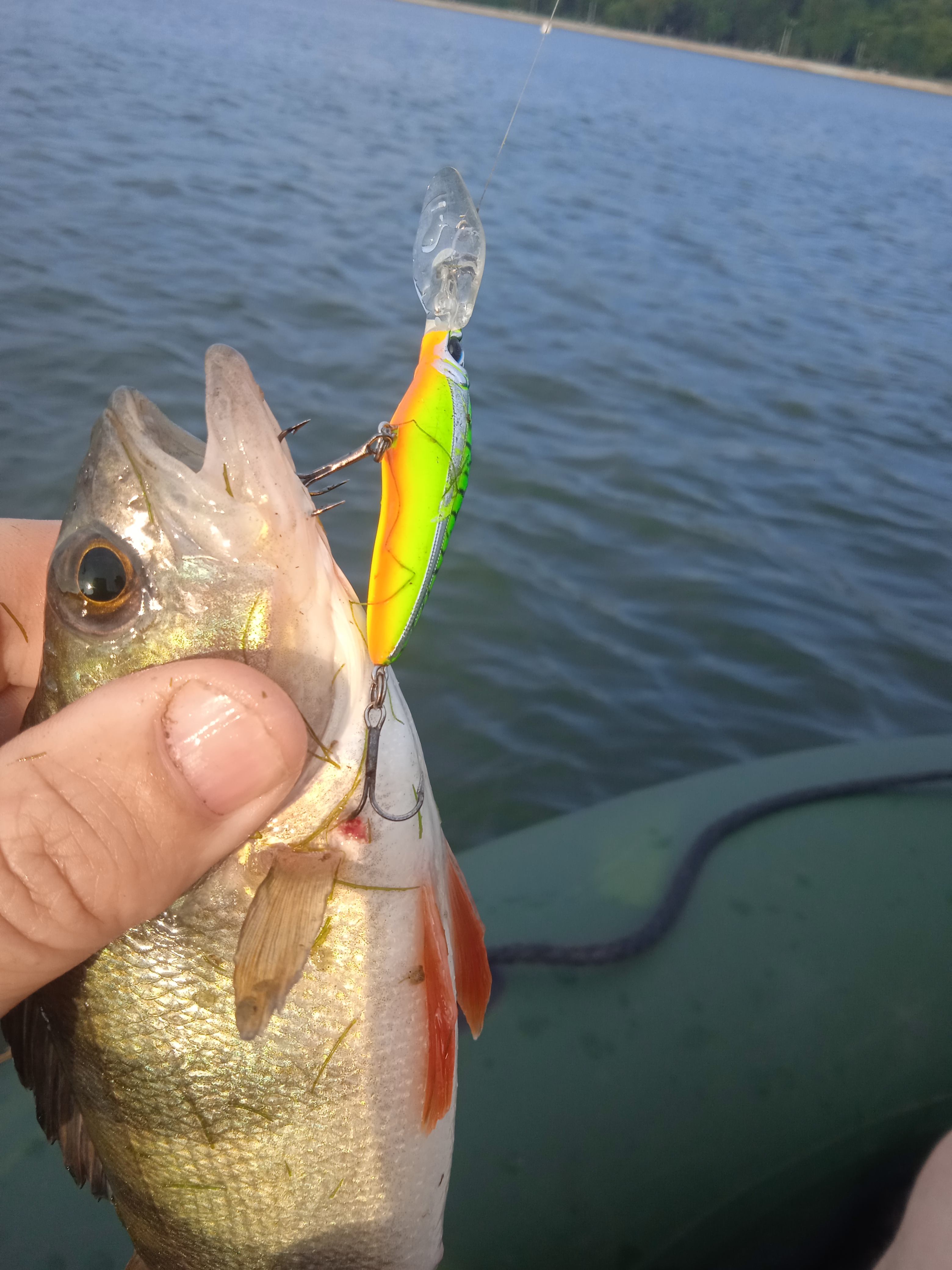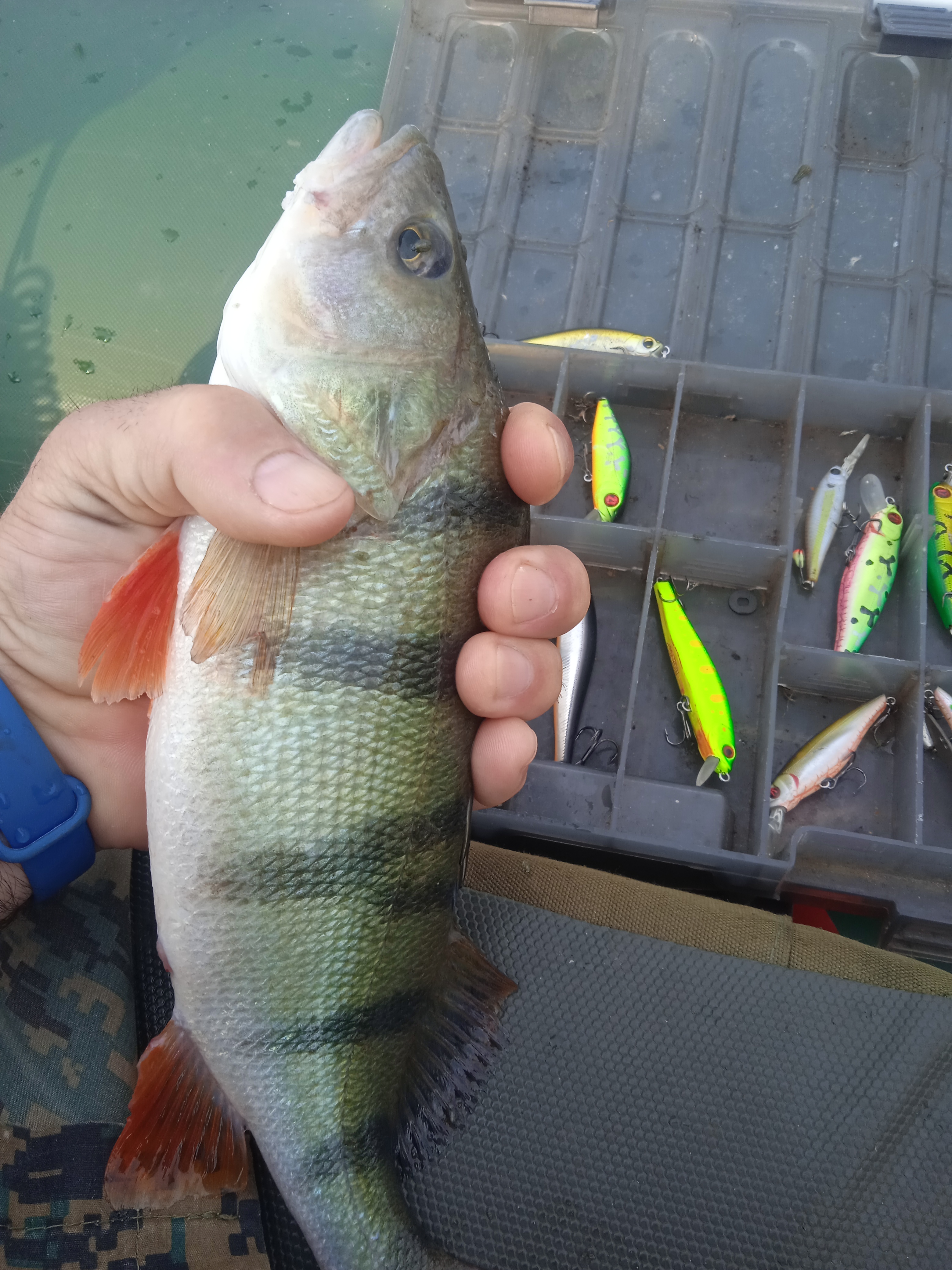 сегодня с товарищем гоняли утром окуней. С собой взяли только воблерки, ни железки, ни тейлики, ни силикон не брали. Довольно долго искали его, но нашли. С 6 до 7 примерно он активно хватал искусственных рыбок, прикольно. Часам к 8 он совсем перестал брать, ну и мы свернулись и к дому. Гигантов выловить не получилось, но окушок весь ровненький), откровенной мелочи не было. Самых упитанных забрали домой, остальных "матросов" оставили еще подрастать.