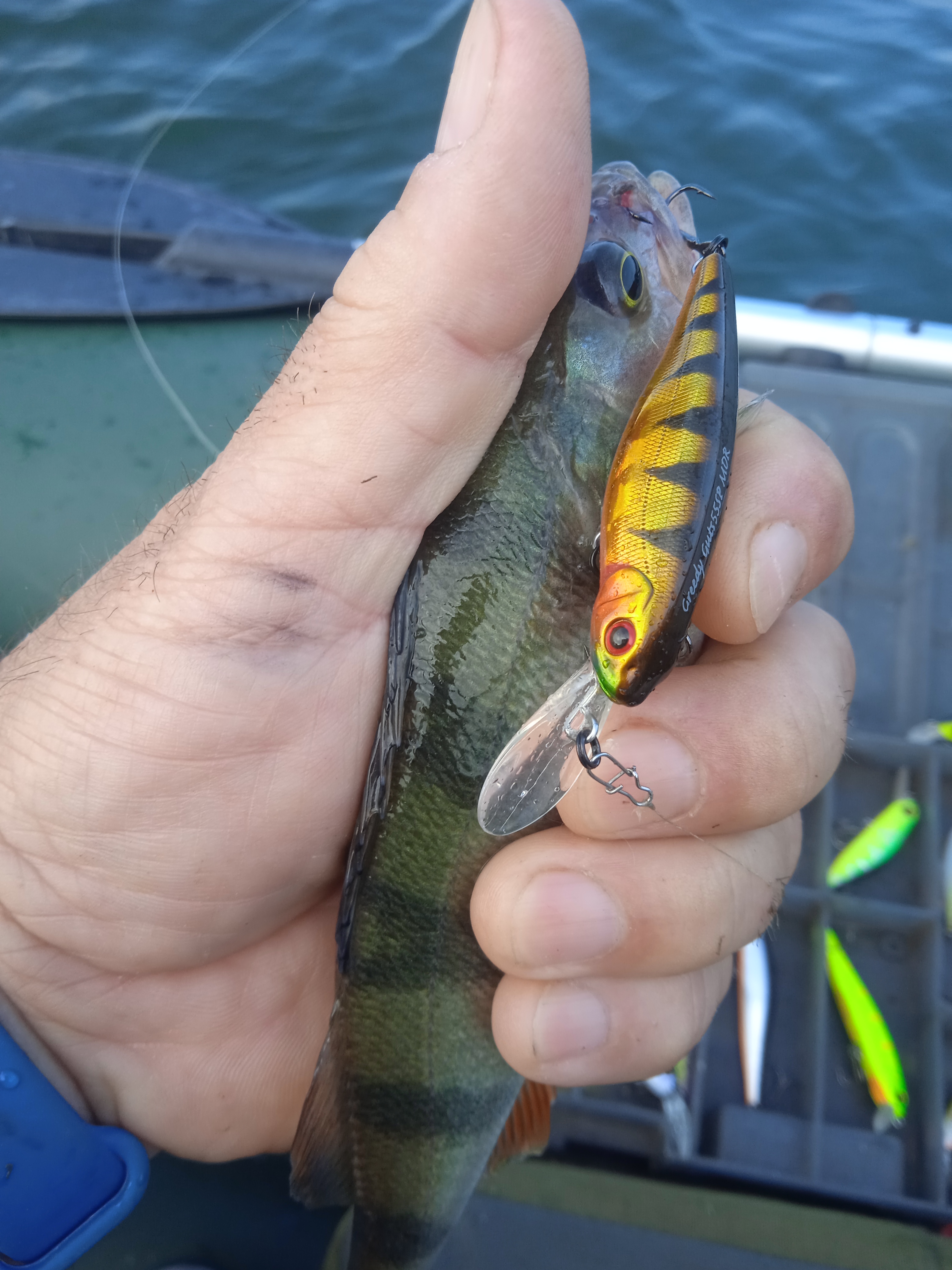 Мелких шнурков пару отпустил, отпускал всех окуней, да и достойных полосатых не было. Пяток сходов у лодки, пяток щучьих ударов мимо, остальные позируют на фото. Воблера и железо, вот мои фавориты на последних рыбалках