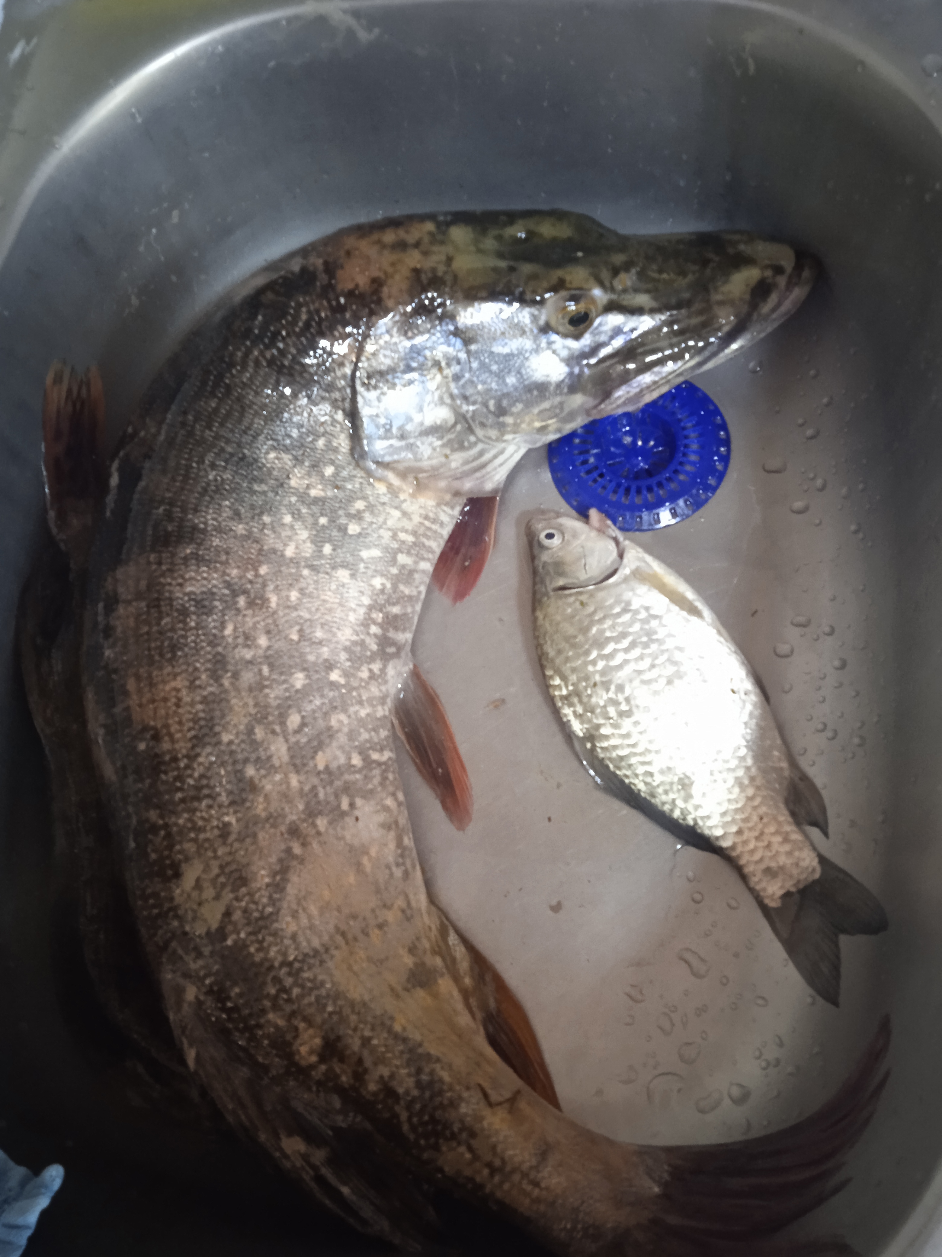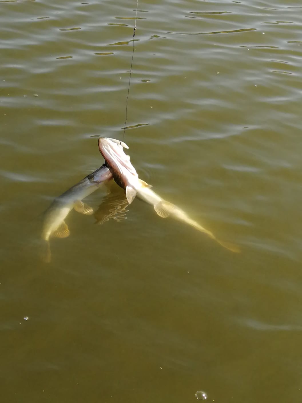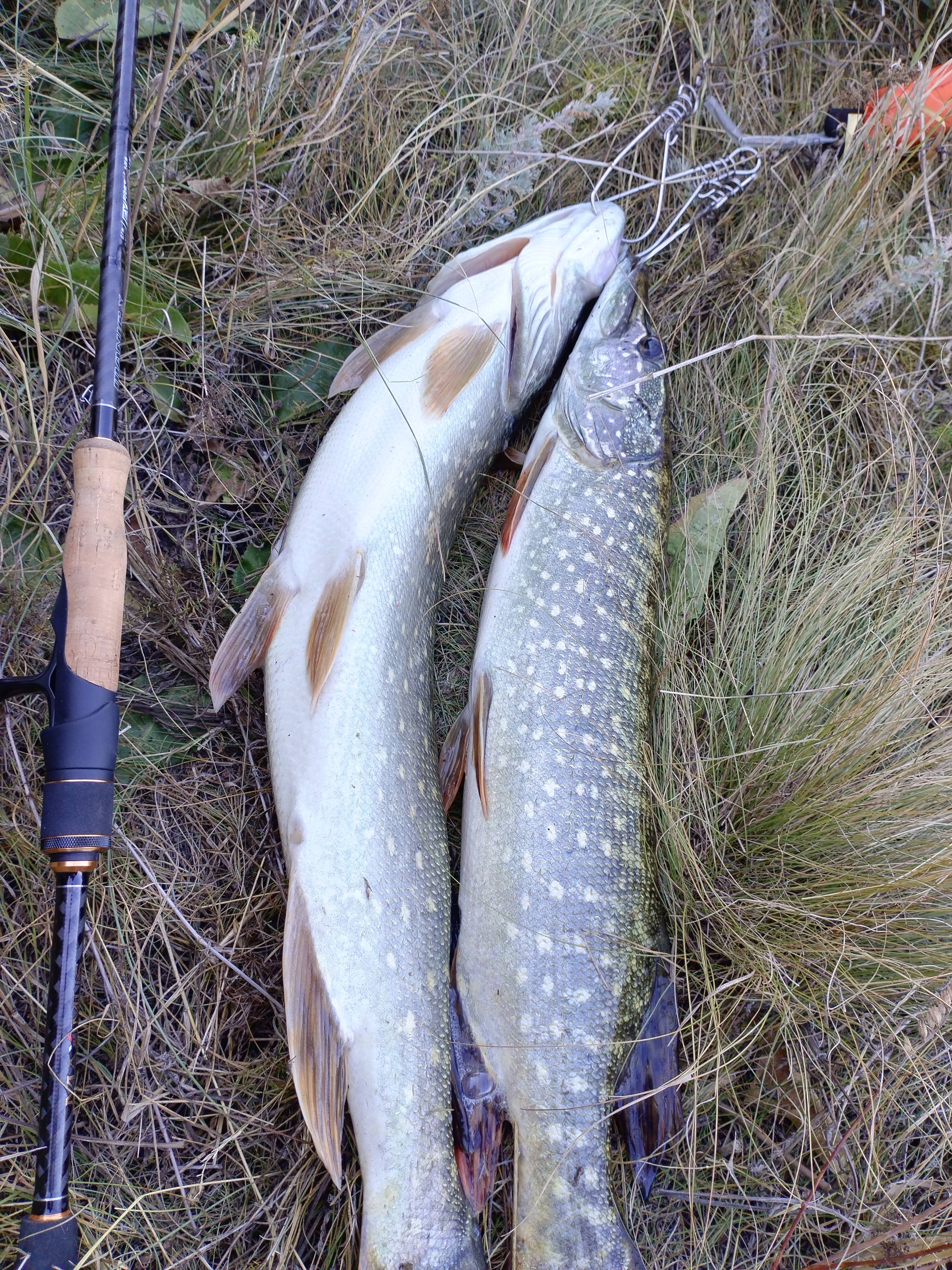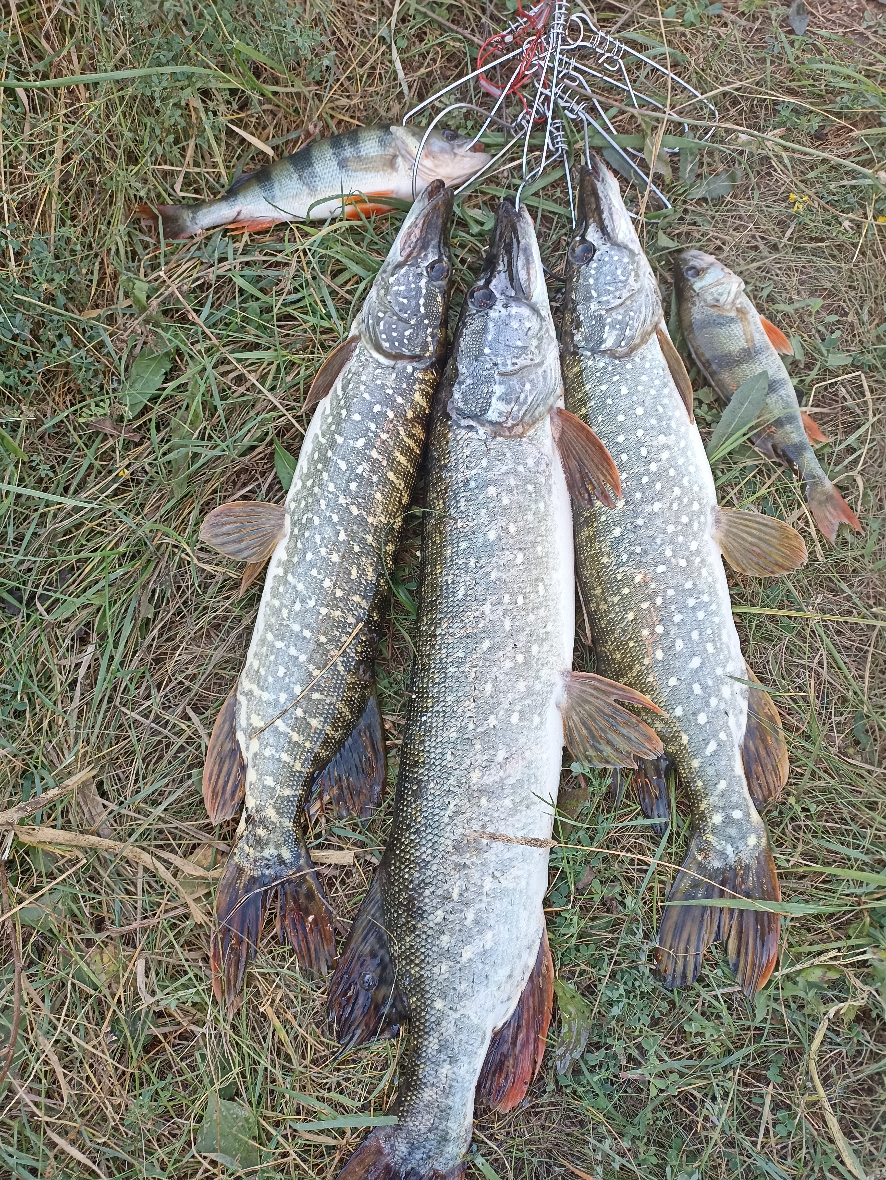 Прям дежавю))) с прошлым разом. Только щучки чуть потолстели). Так же две съедобные и один хороший окунь.