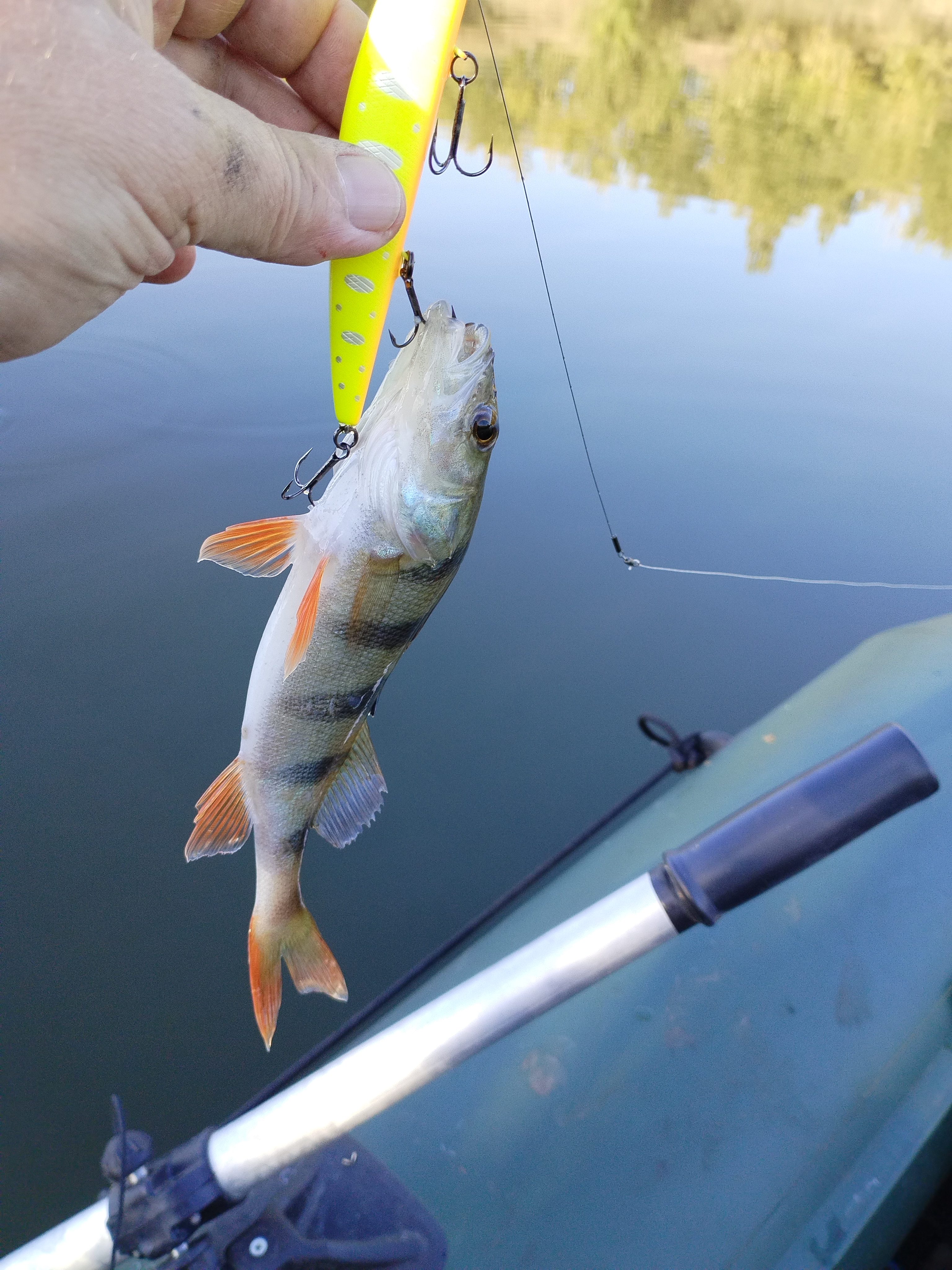 Еще четыре хороших окуня поймал. Их не сфоткал. Они на щучью блесну влетели. И вообще блесна лучше работала.