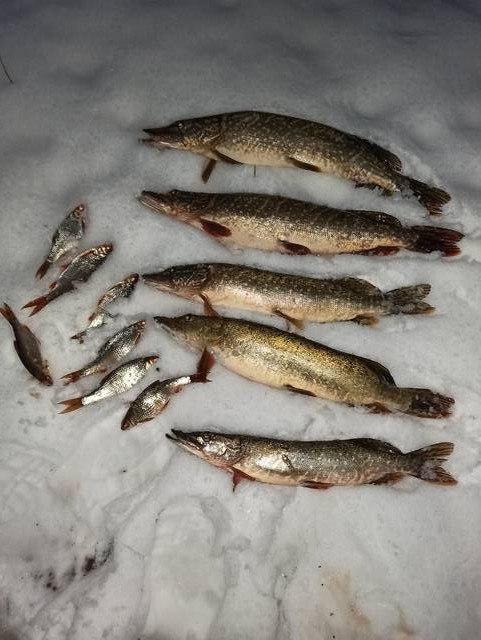 запоздалый отчёт. был на пруду в семилукском районе 2 января. с пол 9 до 12, дальше надо было на работу.было 4 подъёма. 3 щуки все до килограмма. живец пескарь. на блесну искал окуня, штук 12 с ладошку, крупного не нашёл, да и мелкий был неактивен. на мотыля хорошо клевала плотва с пол ладошки , но проскакивали особи грам по 100. в общем чуть отдохнул, наловил живца на след рыбалку . лёд на удивление от 10 до 14 см.