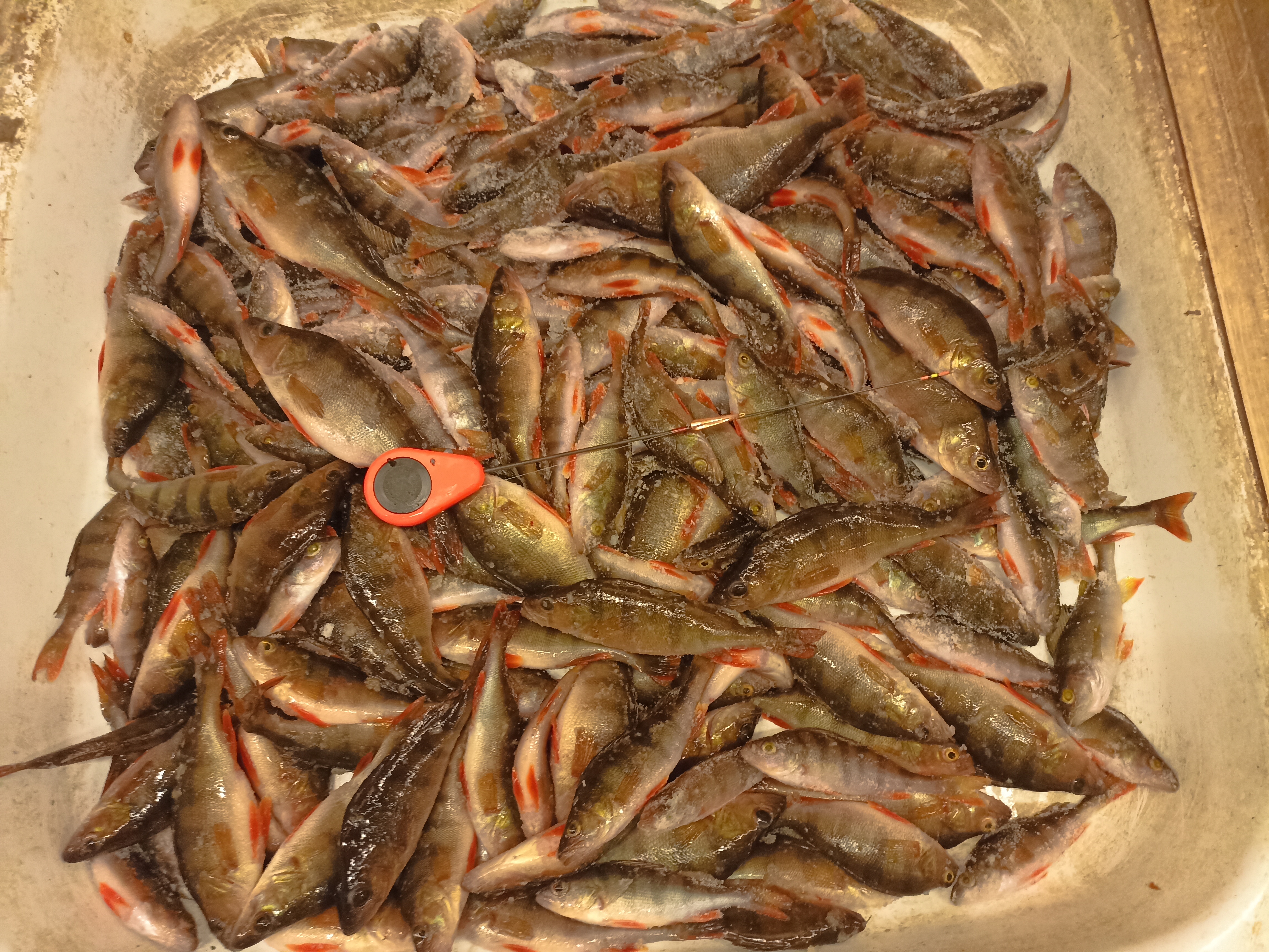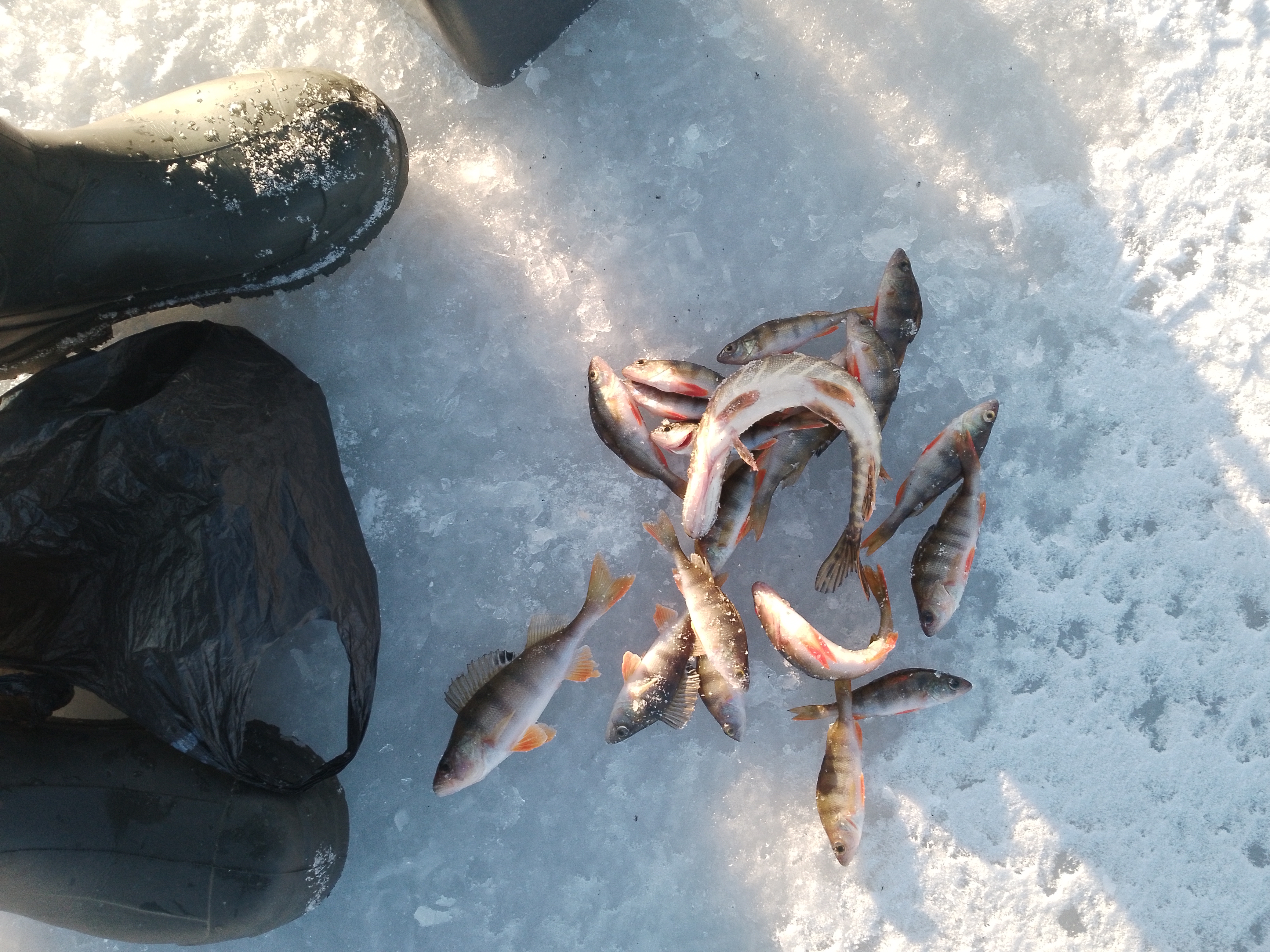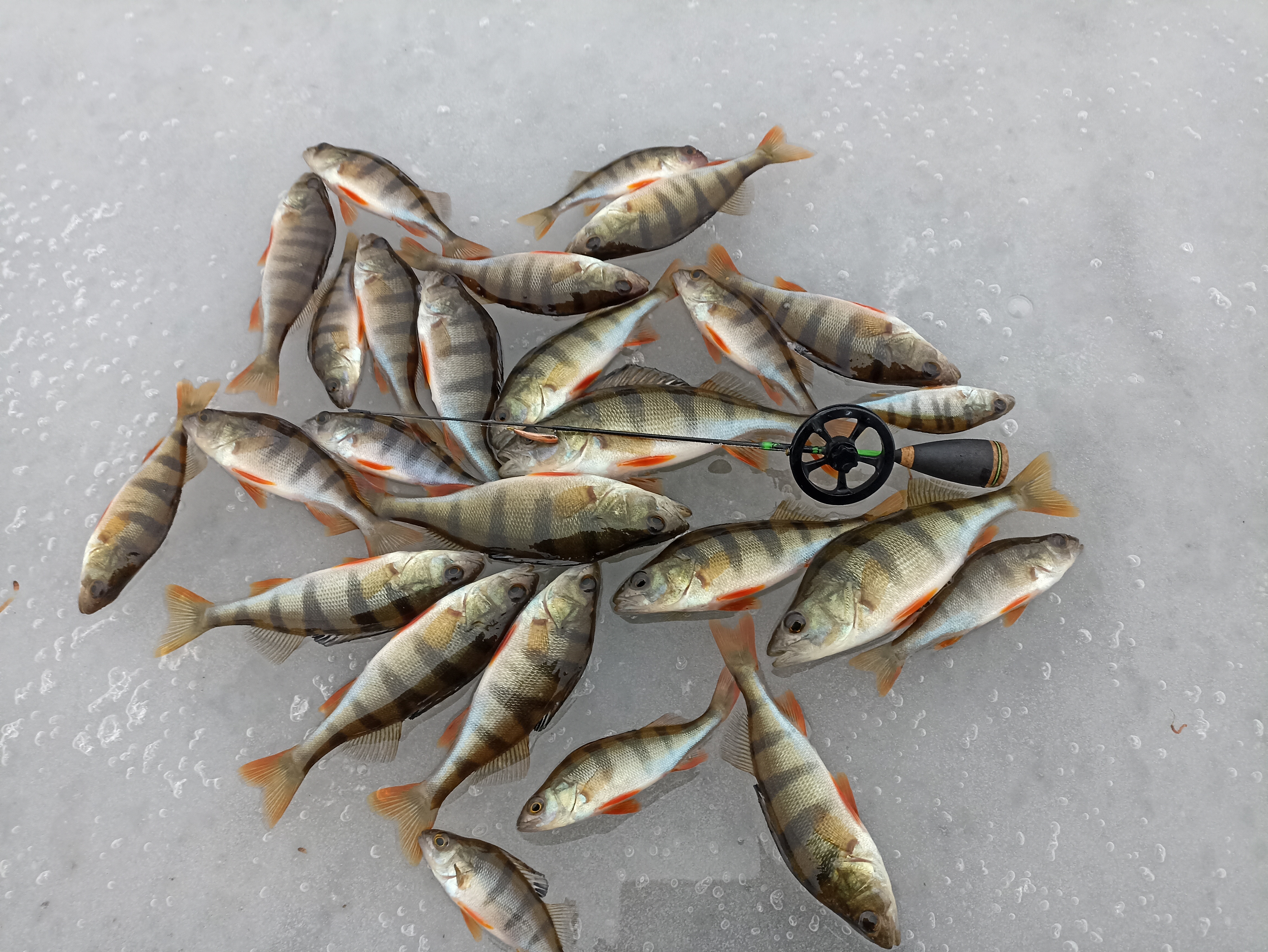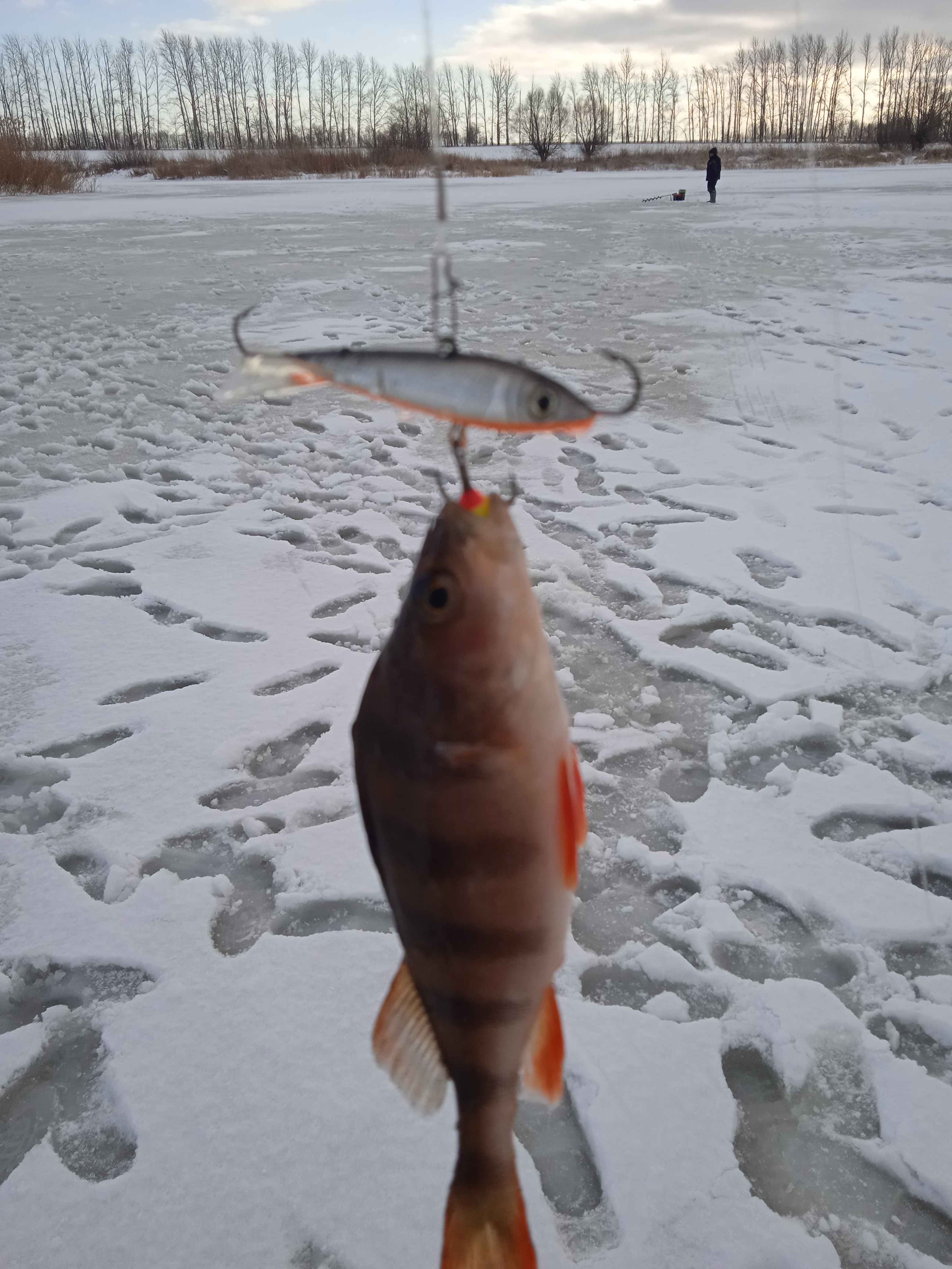 Всем привет. Сегодня немного поработав решили посвятить время любимому занятию. Пруд, Паркамуна, блесна, окунь. Лёд надёжный по всему зеркалу, когда он успел окрепнуть непонятно, в последнее посещение был почти никакой, потом плюсы и всего несколько холодных ночей. Почти весь в жерлицах, особо не оглядывались, но по ходу шнурки сегодня клевали. Ходить можно везде, но окунь клевал как в самое херовое глухозимье. Алла сначала по чуть живцовых только ловила, у меня первая внятная поклёвка случилась только часам к трём, с одной лунки, сотой наверно по счёту взял всё-таки двух съедобных, один прям приятный. Пробовали везде и откровенную мель и русло, пробурили футбольное поле рабочего проверенного участка в решето, не хочет он сегодня Реально выложились на все сто, со спокойной душой поехали домой. По окушку прям хочется куда-нибудь ещё раз съездить, неудовлетворённость какая-то просто пипец.
