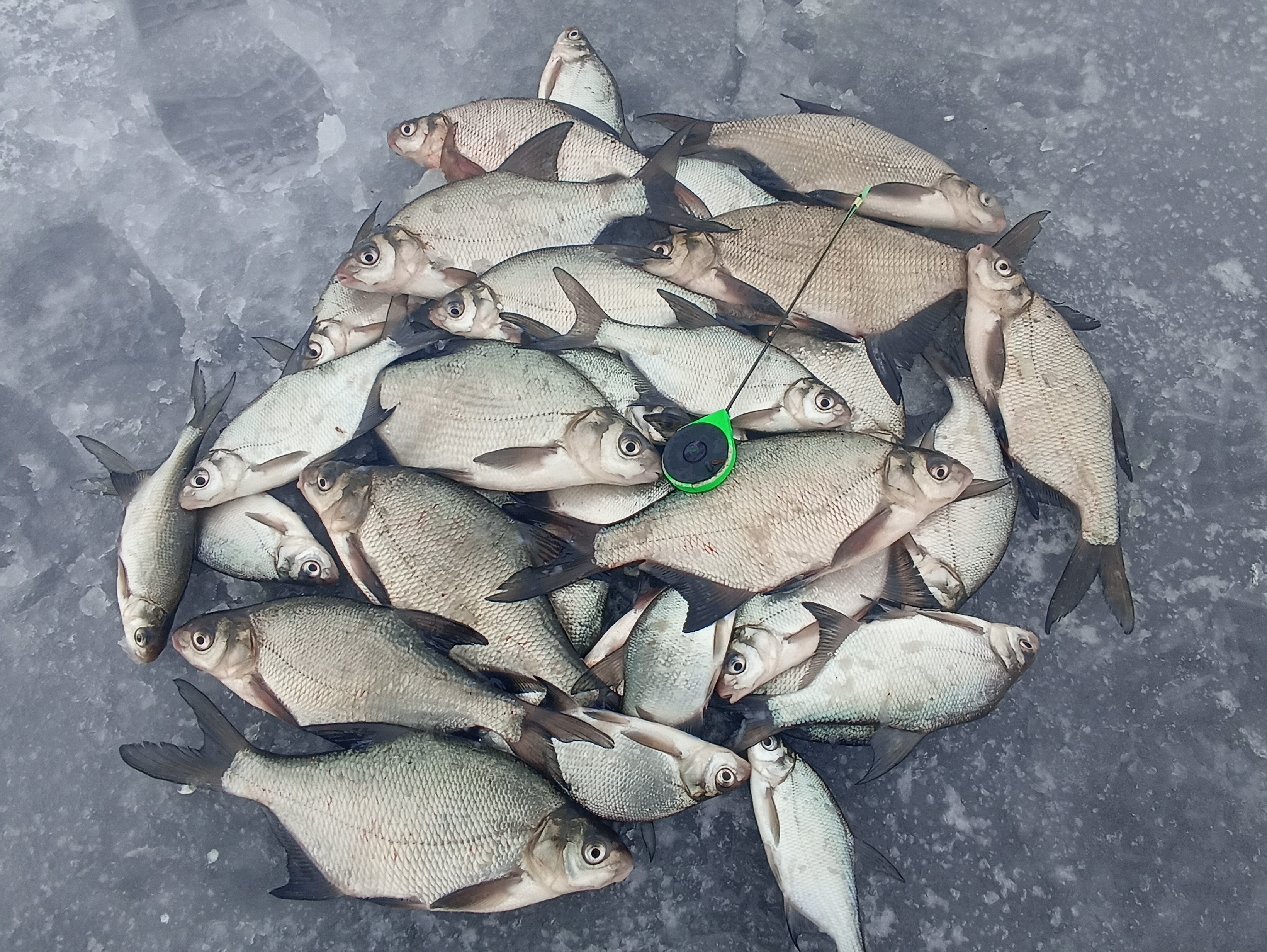 Судорожно меняю наживку и делаю очередную проводку и всë повторяется снова, второй красавец на льду Затем лунка замолчала и я оставив в ней дежурную удилку начинаю наконец таки доставать из последующих лунок подлещей. Этот процесс так увлëк, что я на несколько часов забыл про оставленную удилку и вспомнил про неё лишь к концу рыбалки. Удочка стояла на месте и только кивок был неестественно загнут в лунку, подхожу, подсекаю и всë повторяется в третий раз