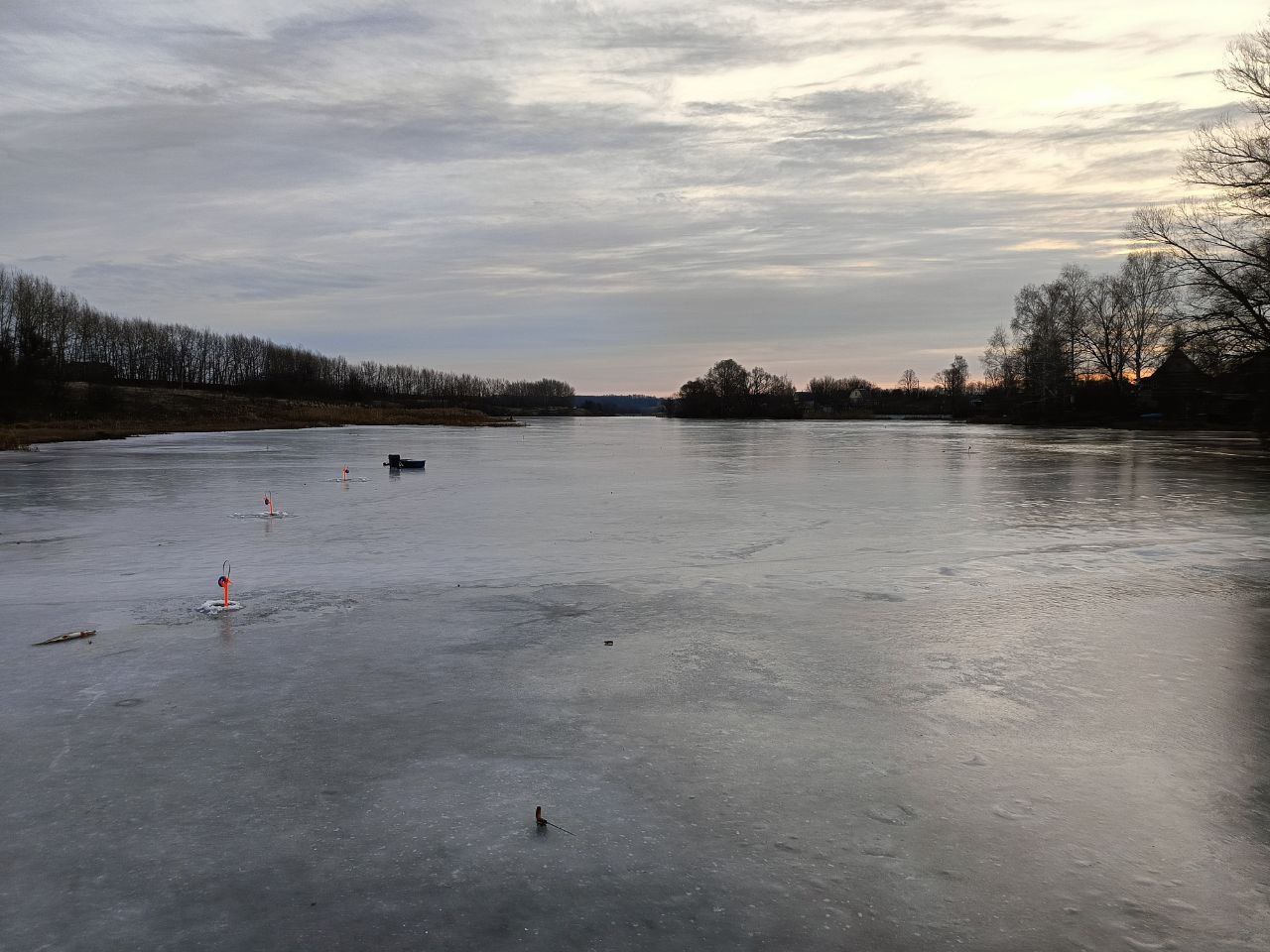 Лёд так себе, местами темный. Брал с собой пяток жерлиц, одна сработала часов в 9, щучка почти 1,8 кг. Сезон открыл, с коллегами по увлечению пообщались душевно, а что ещё надо. Если так и будет плюс, лёд смоет.
