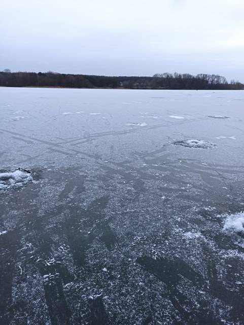 Вот в принципе и вся скоротечная рыбалка. Да, лед у плотины - 8 см. В усынке - 10-15. При этом посередине водоема в районе плотины гуляют волны. Так что, рыбачить можно, но осторожно.