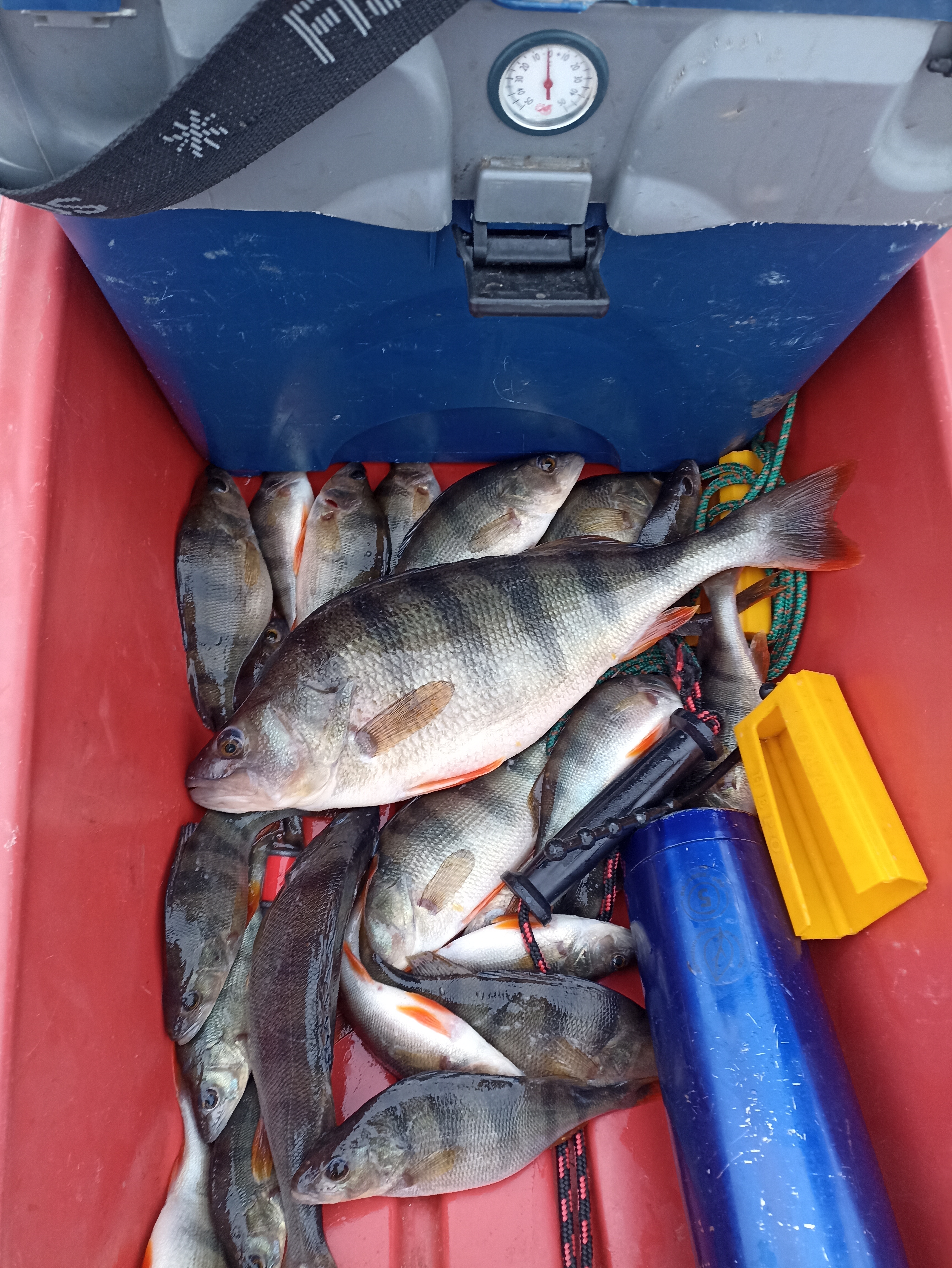 Приветствую коллеги! Сегодня сменили репертуар и вместо блëсен и балансиров вооружились балалайками с мормышками. Поехали к Сергею в Липов Лог погонять подлеца. Приехав на место поняли, что коварное потепление уменьшило толщину льда в наших клëвых точках до стрëмного. Поэтому двинули ближе к концу длинного хвоста и закормившись попытались там кого нибудь соблазнить. Первыми на наши угощения пришли как всегда бонусные мизинчиковые ерши , а чуть попозже слегка и фанерка проскочила: