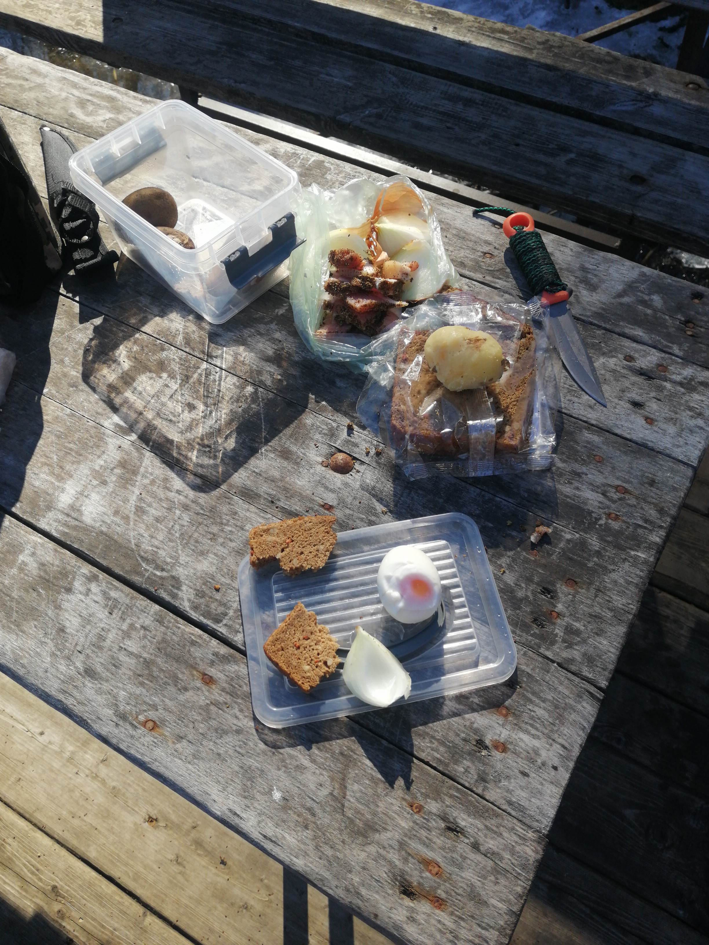 Крайние выходные перед запретом решили проведать Битюг. Нива с трудом, но довезла. Уровень как летом, по ходу разлива не видать. На второй постановке словил шнурочка, настроение поднялось. Но не тут то было, прошли все знакомые осенние места, как в ванне. Сразу мысли в голову-нерест, хрен клюнет. Становимся на последнюю ямку и на втором забросе получаю конкретный удар в руку, секу но мимо, у резины клок с бока выбрала. Настроение поднялось, руки уже по другому катушку крутят, и тут Аллочка отличилась, удар и почти четвёрочка в подсаке. Вскрытие дома показало что жрёт она нормально, внутри щурёнок грамм на тристо оказался. Словили ещё одного шнурка и с удовлетворением, что не пустые, да ещё с четвёрочкой погнали до дома.