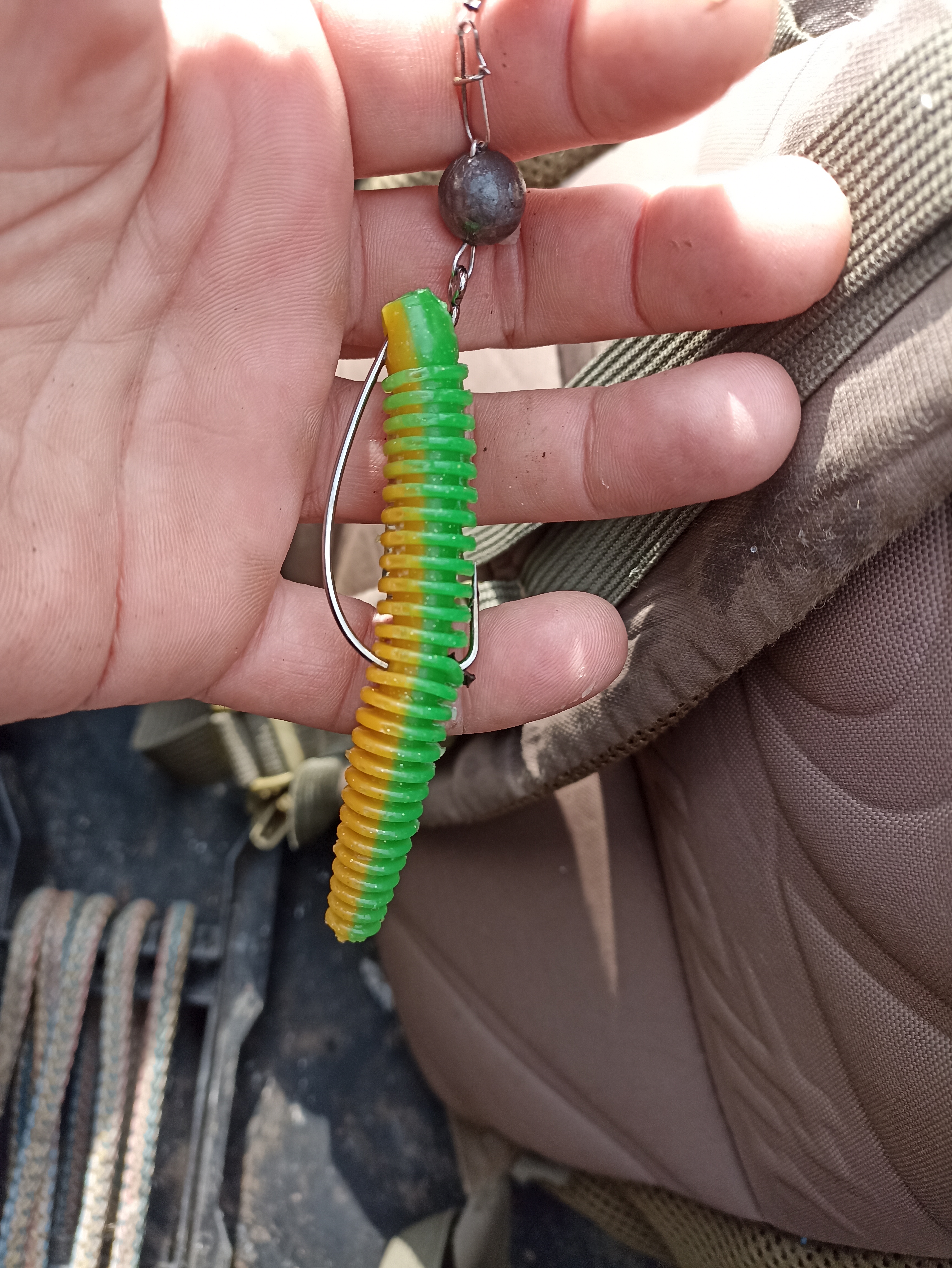 Два откусаных хвоста приманок. Третью перекусил пополам.