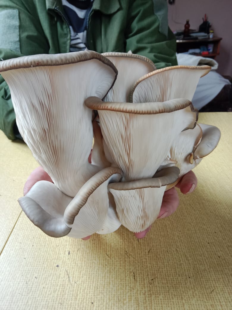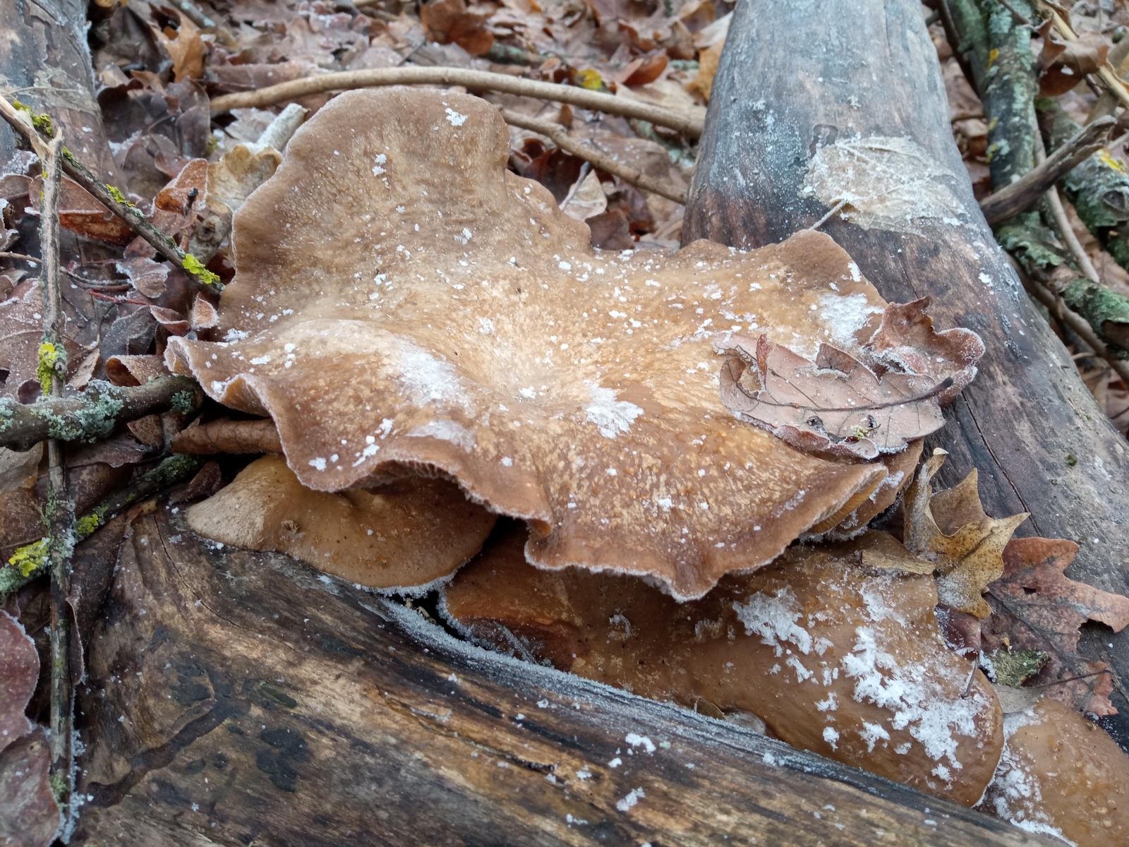 Есть вешенка и фламмулина... Сейчас замерзшие, но если недавние, то отличные грибы.