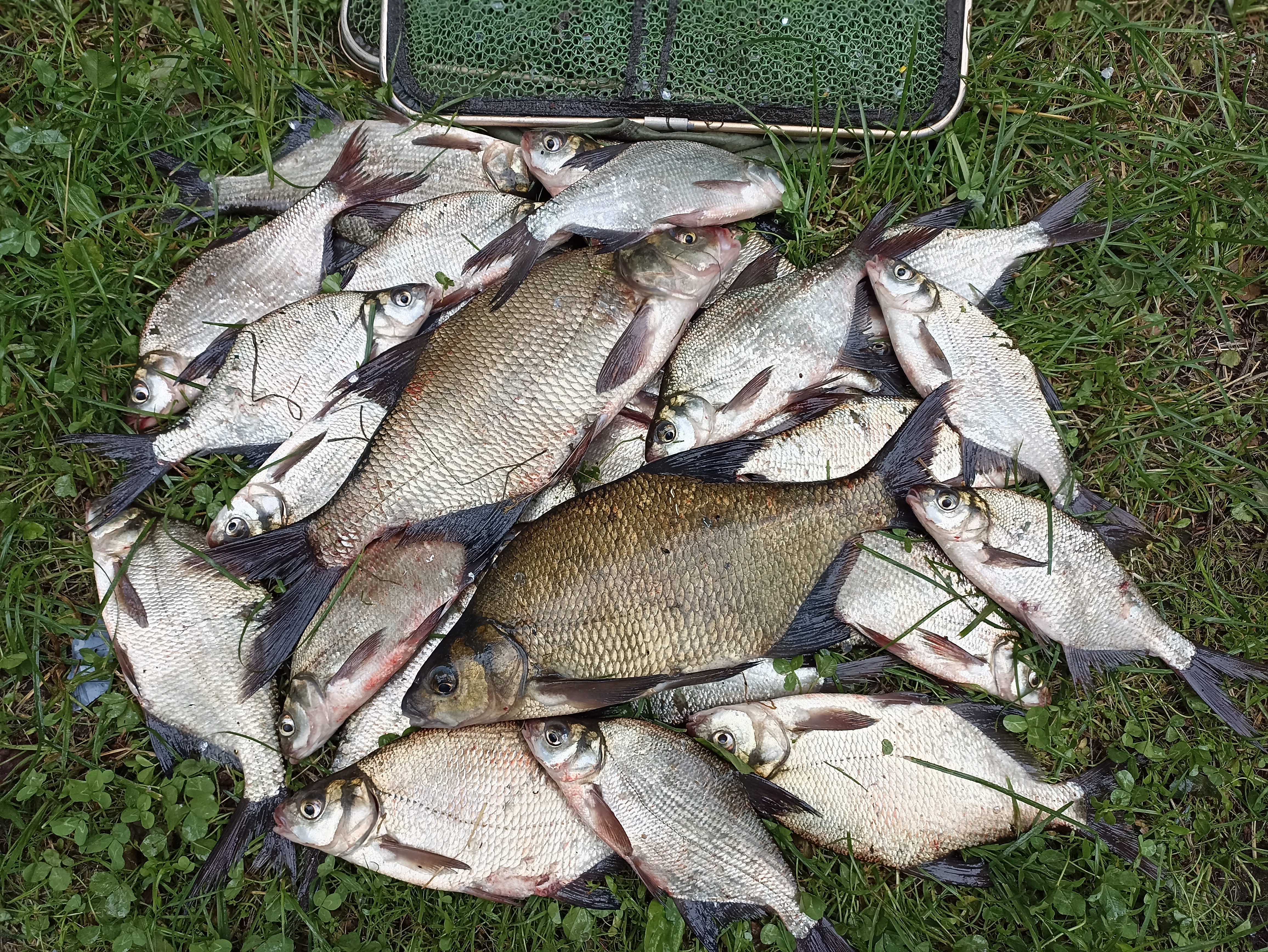По рыбе всё было не менее интересно. Со старта абсолютно не донимала мелкая рыба. Признак хороший, значит где-то здесь должны быть крупные особи. Только они почему-то не спешили появляться. За первые пару часов удалось поймать лишь пару упитанных чехоней и несколько краснокнижных шемаек. Первый лещ пожаловал спустя 2,5 часа после начала рыбалки. Квивертип стал медленно покачиваться, сразу подумал, что просто кормушку понесло, но всё-таки решил вымотать. Подняв фидер и почувствовав тяжесть, сразу пришло осознание, что это хорошая рыба, а упругие удары в руку сразу выдали леща. Плавно завожу в подсак первого полторашника и с удвоенной энергией продолжаю кормить точку. До сумерек выловил ещё одного околокилошника, голавля и несколько чехоней. При чём чехонь клевала исключительно со дна после долгой паузы.