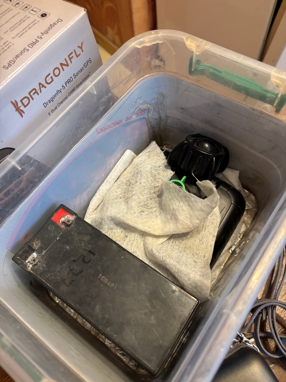 аккумулятор (7А)кронштейн для датчика, столик эхолота и акб на ликтрос, коробка для транспортировки.