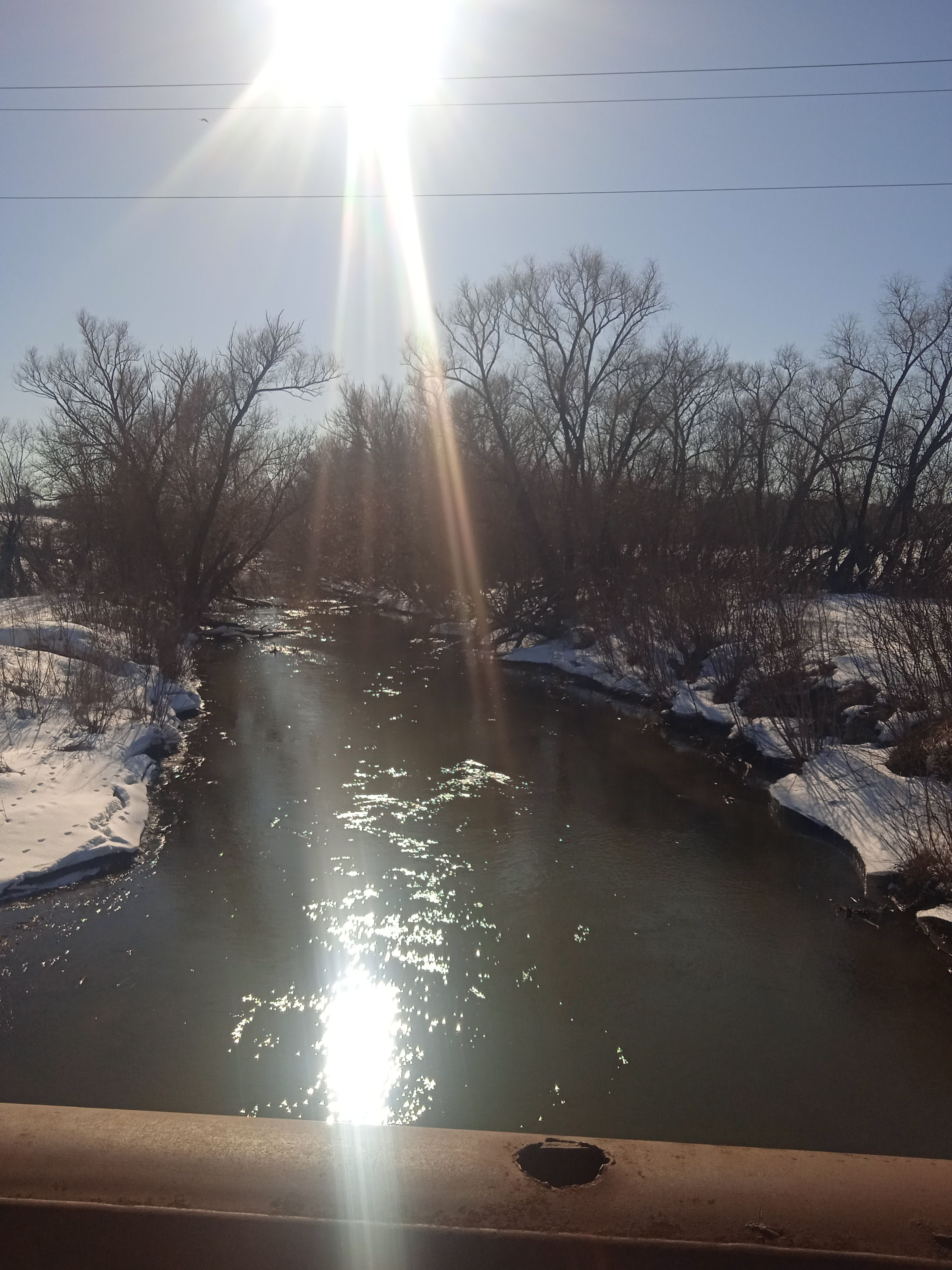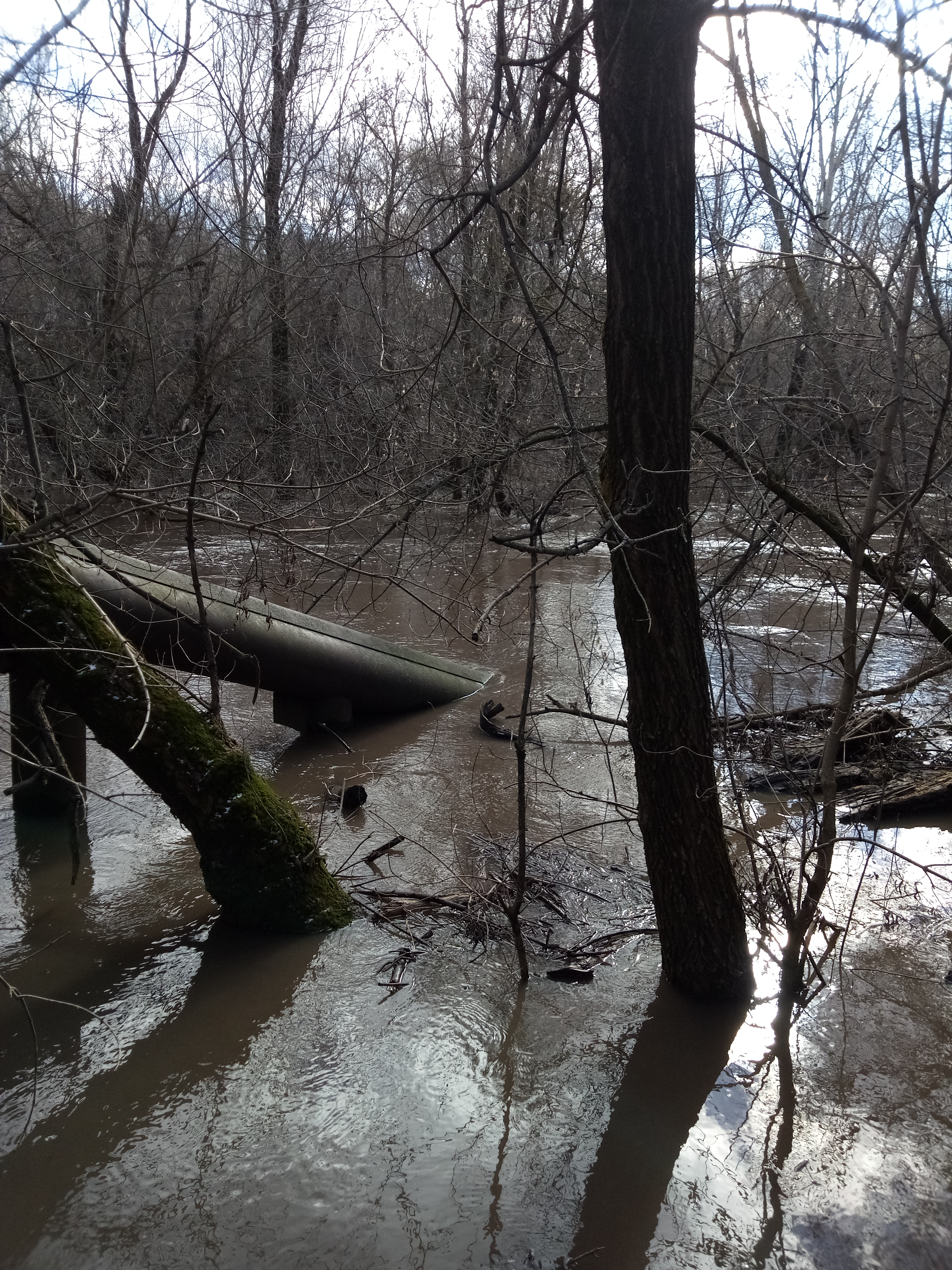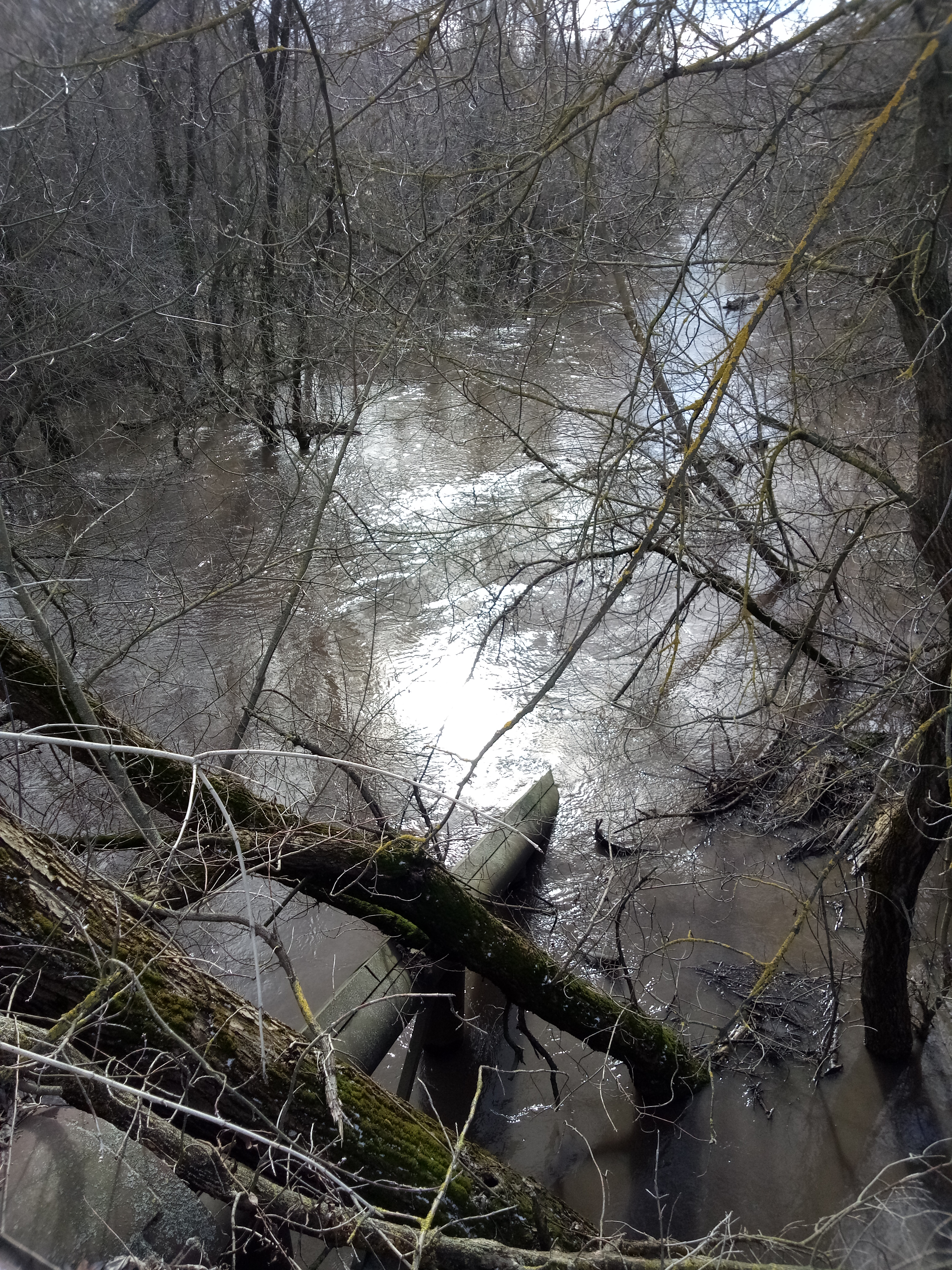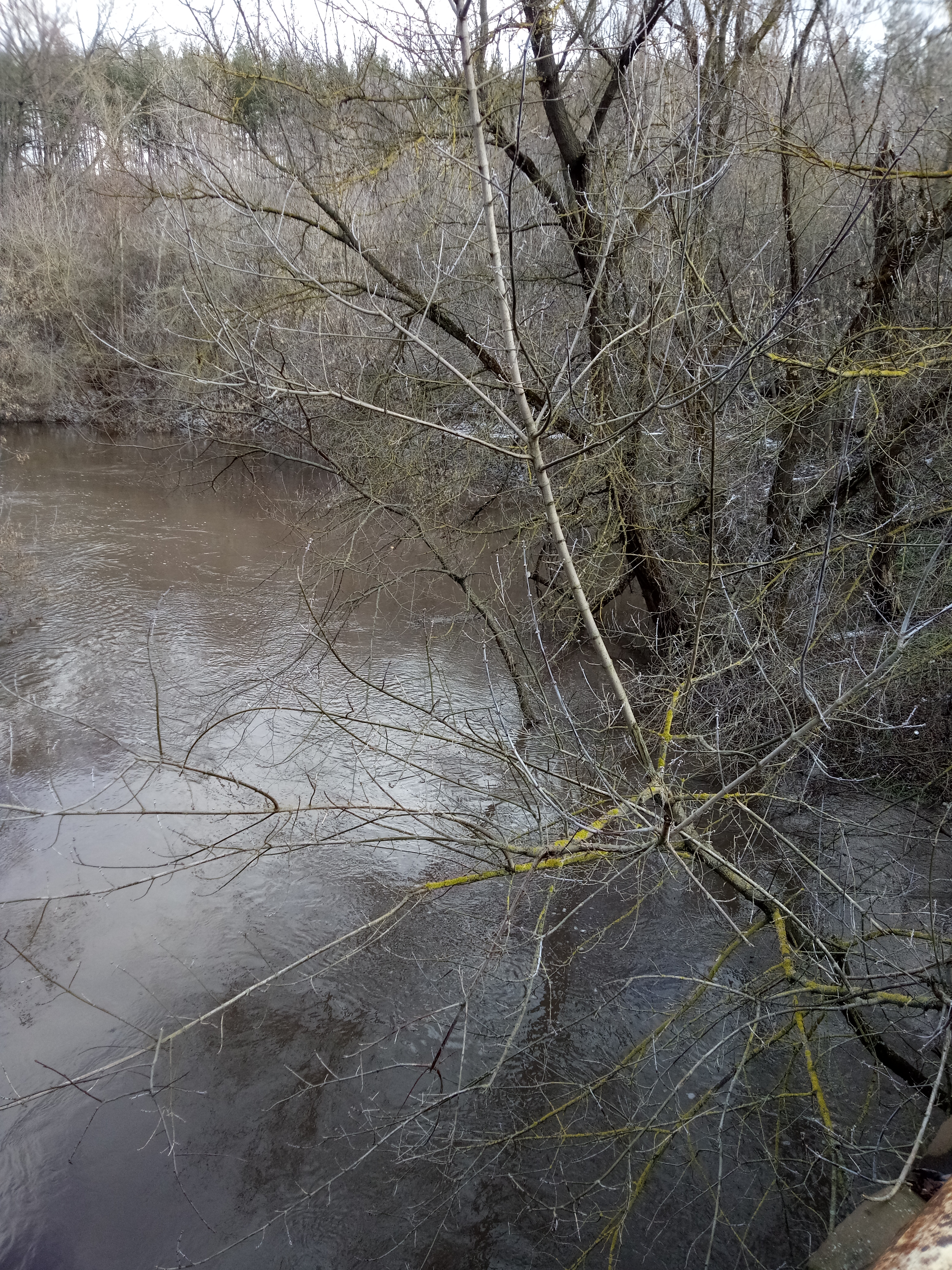 Доехал посмотрел что происходит на реке. Вода мутная, но мусор не плывёт. Поднялась метра на два. Льда нет ни какого, ни на воде ни на берегу. Пора снаряжать поплавочки, скоро за ельцом идти.