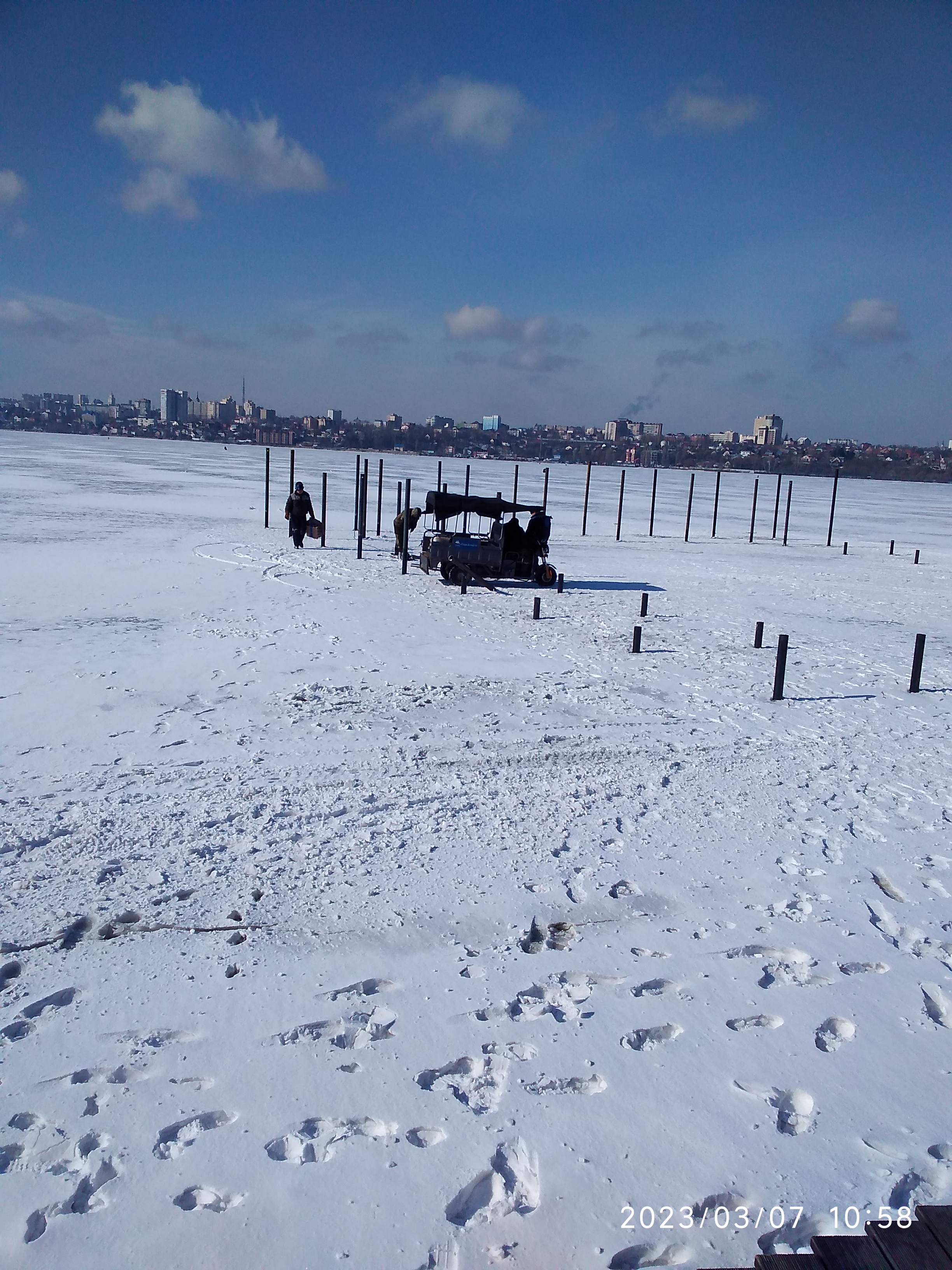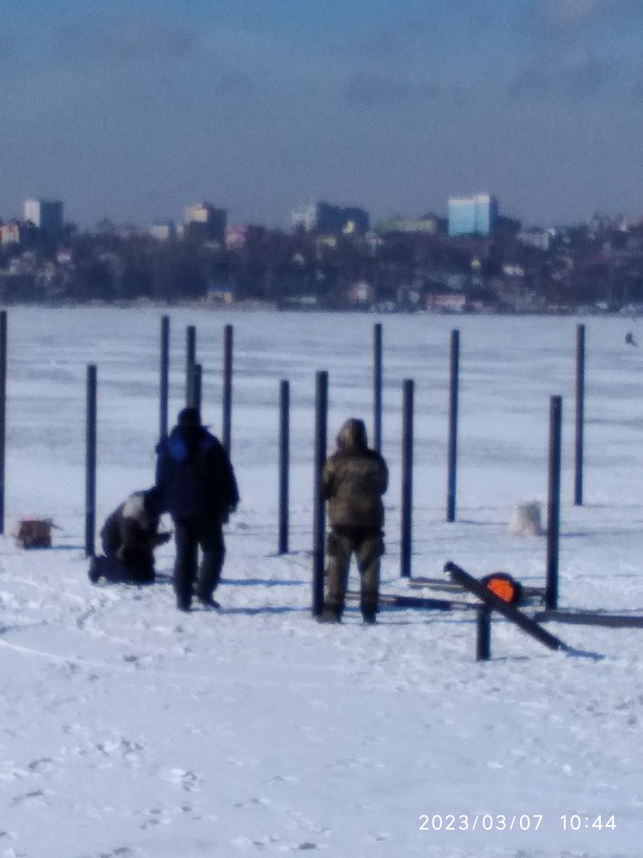 Сегодня прлгулялся до парка "Дельфин". Встретил рыбака коллегу- по его словам вчера хреновенько совсем... На льду пару человек у комышей напротив высоток и на русле человек пять... Справа от Маяка, где раньше был пляж начали строить бассейн, забили сваи... Так, что в следующем году если доживу буду ловить в бассейне.