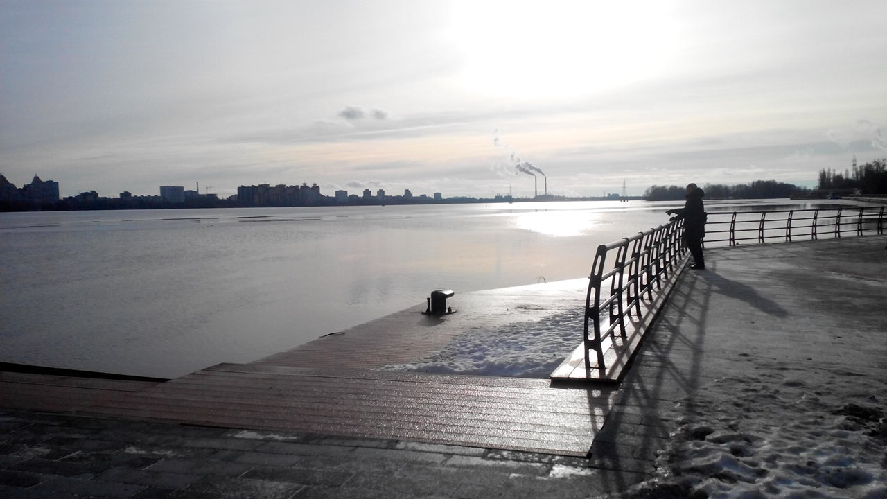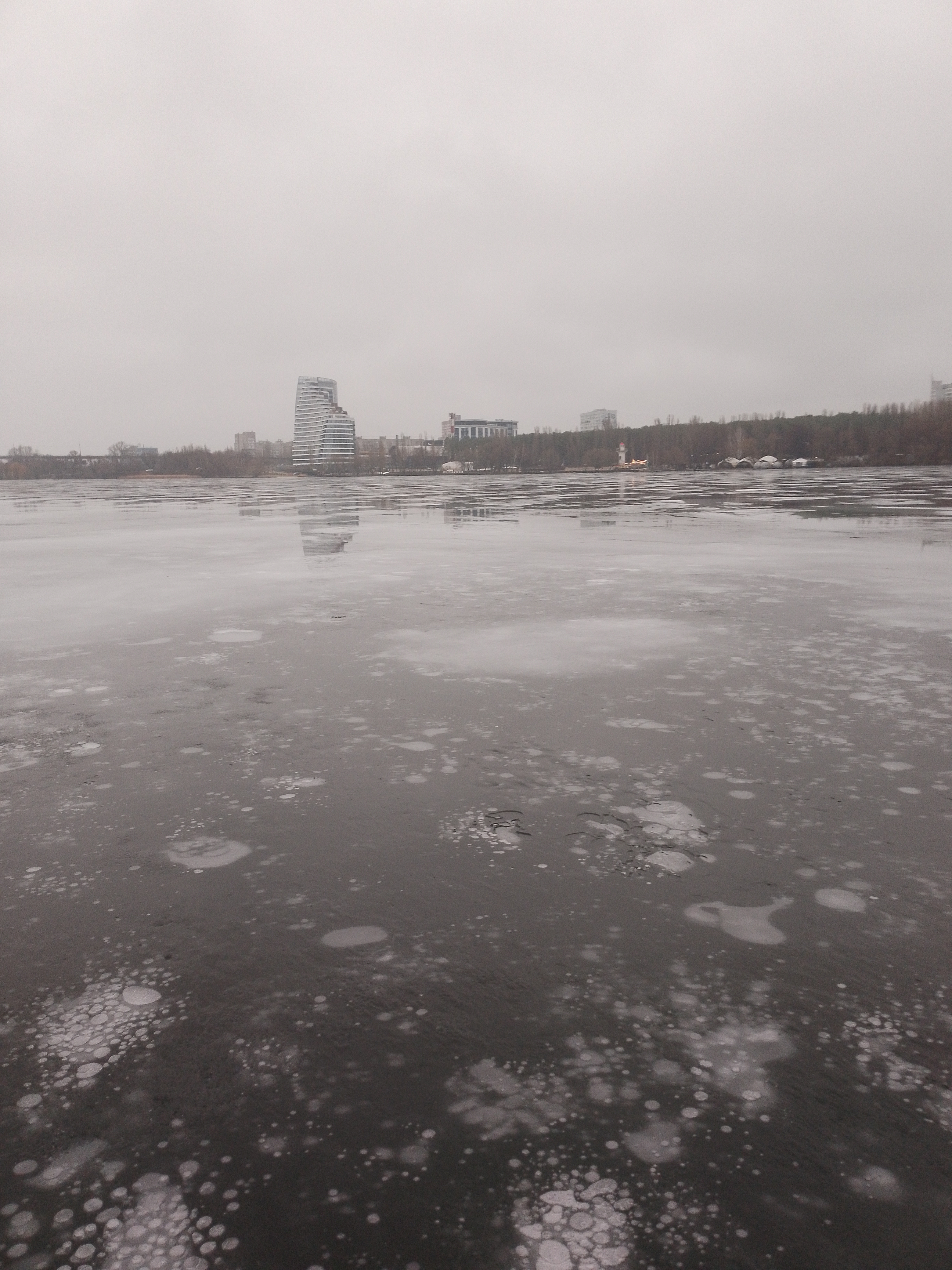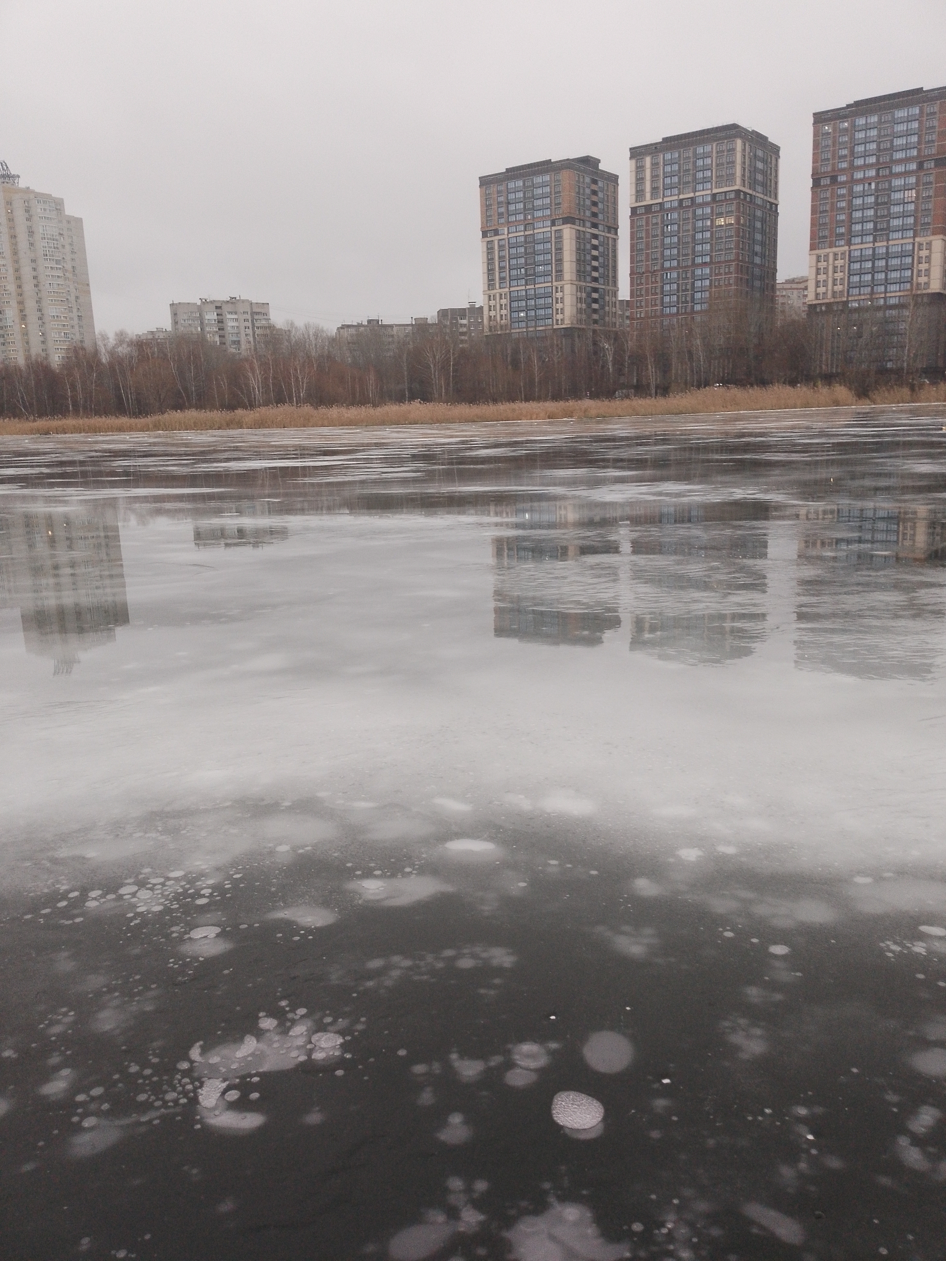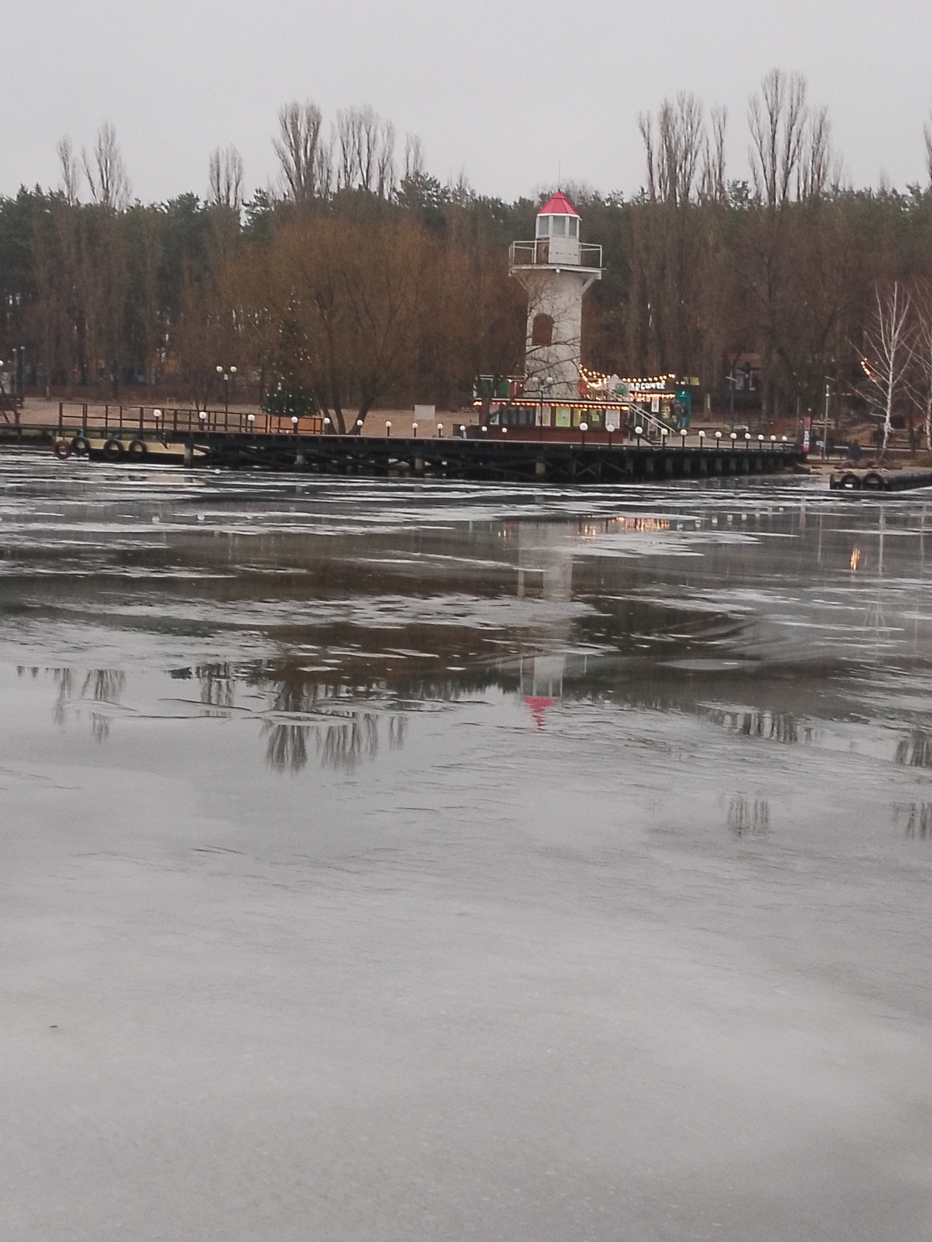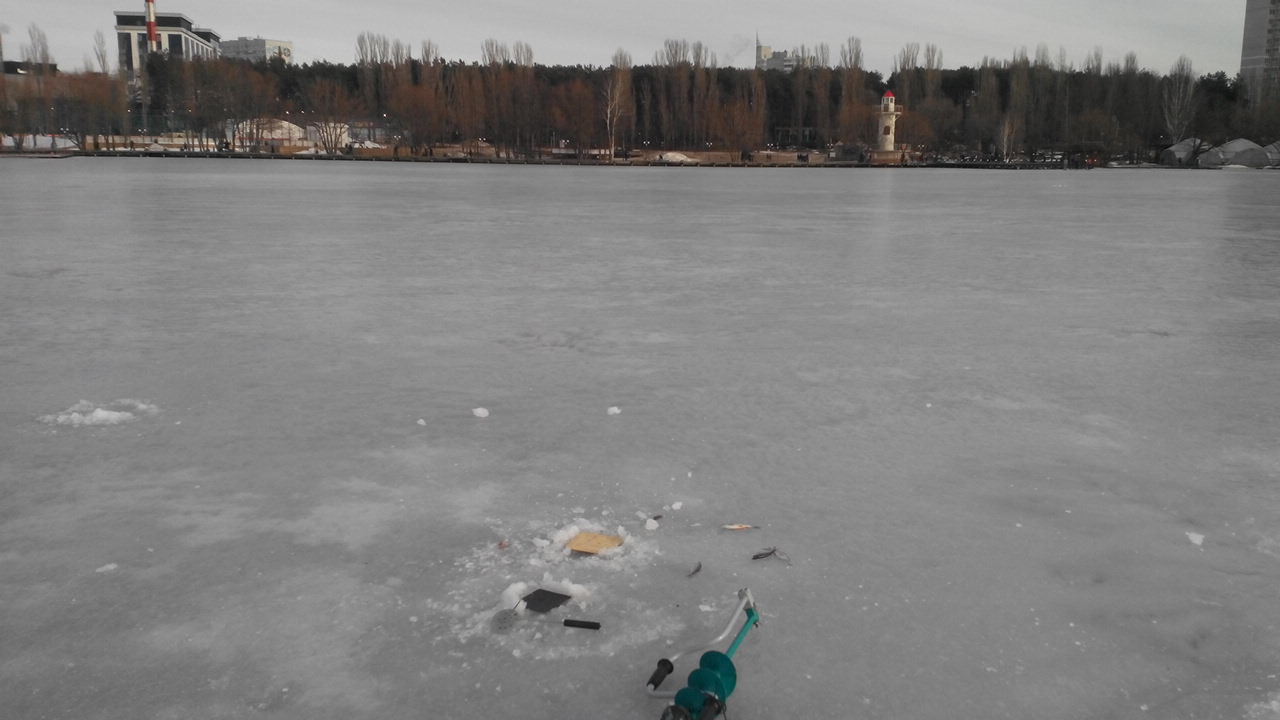 Ловил, а скорее пытался напротив Маяка в парке "Дельфин". Приехал затемно и на лед выходить ссыкотно... Потом смотрю появился один рыбак метров в 100 от берега ближе к Северному мосту.