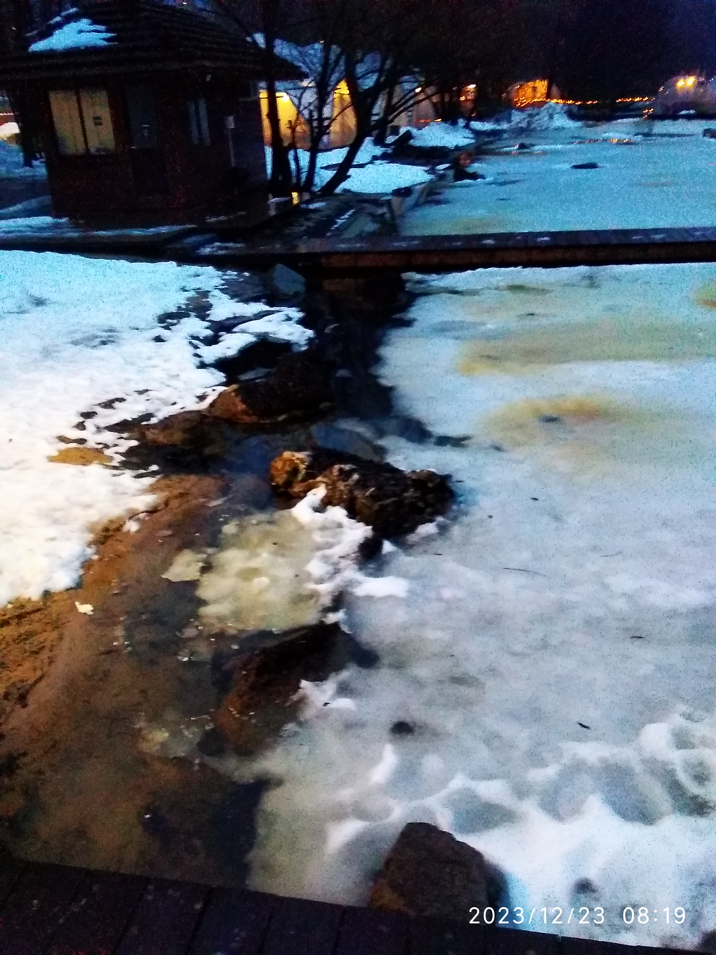Ну что, друзья! Сегодня в 8-00 пошел на разведку под "Дельфин", без ящика и бура. Видимо возраст кому-то бес в ребро и по бабам, а я блин на рыбалку! На льду никого! Видны проталины и вода сверху льда... Лёд отошёл от берега на метр полтора. Правда ОДИН сидит в палатке! Фонариком светил... К стати в ту субботу он там же сидел. Может точку прикормил, а может с дома выгнали, а обратно выйти хрен может..Это как же надо не любить пылесосить или помогать ёлку наряжать! Что-то подумал и решил не рисковать... Да и полатки у меня нет... Квартира есть трёшка на 100 квадратов и дача в. Медовке... Но дочкам хлопоты не хочу создавать -какое на хрен завещание-утоп, так утоп!
