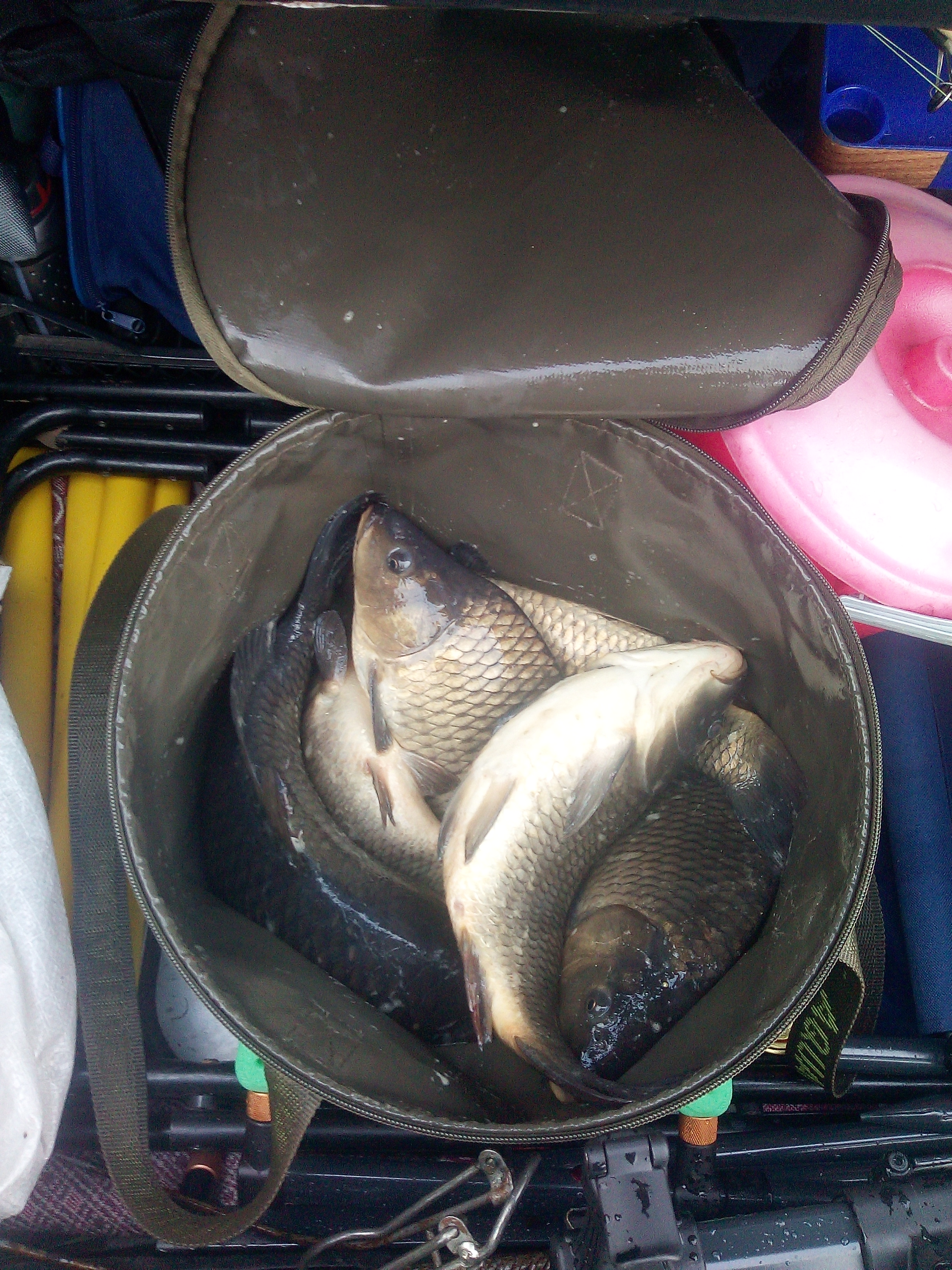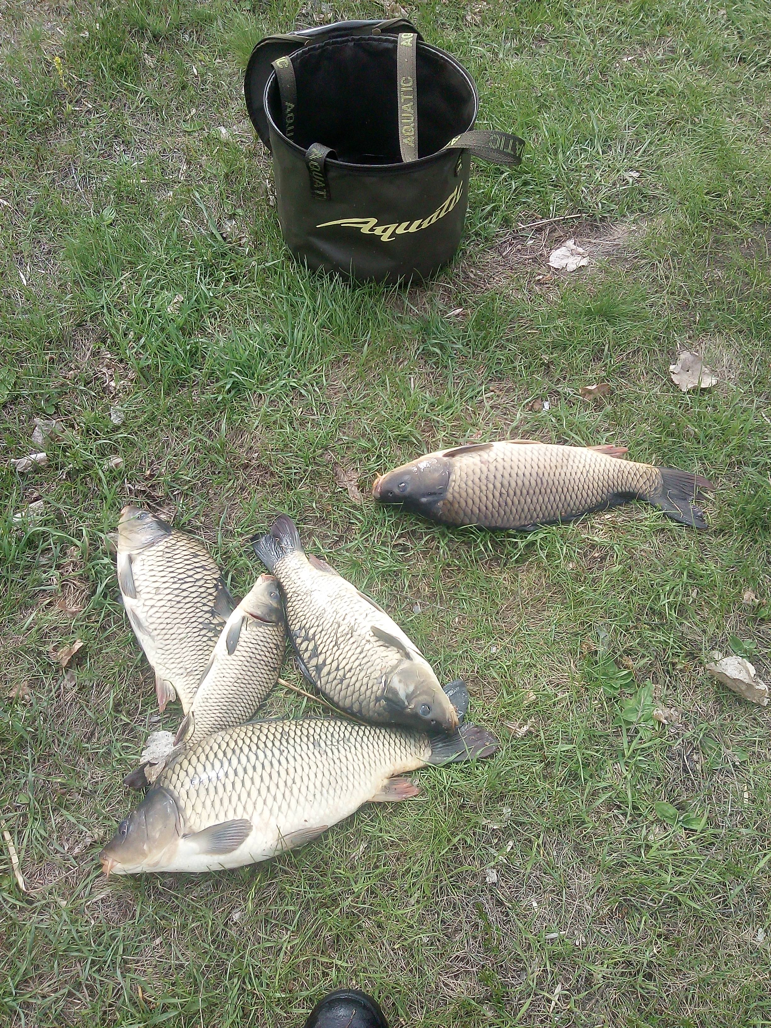 . Выехали на пруд в 3:30, хотели попасть на утренею зорьку,но... попали в чернозём после дождя и если бы не охранник пруда на УАЗе не попали бы на пруд вообще(огромное ему спасибо что дотащил нас до места рыбалки).Но таскал по пруду он не только нас но и многих других , так как ночью там прошёл дождь. Где то пол шестого уже были закинуты удочки и через 20 минут уже была первая долгожданная поклёвка. Ловили на донки,друг закинул ещё поплавочку . Ставили кукурузу и опарыша , клевало хорошо,были и сходы и зацепы так как прямо перед нами был затопленный куст.В общем итоге у нас 9 карпиков от 1 кг и до 2 кг и 3 карасика(пойманных мною лично),потому что муж не обращал внимания на его поклёвки