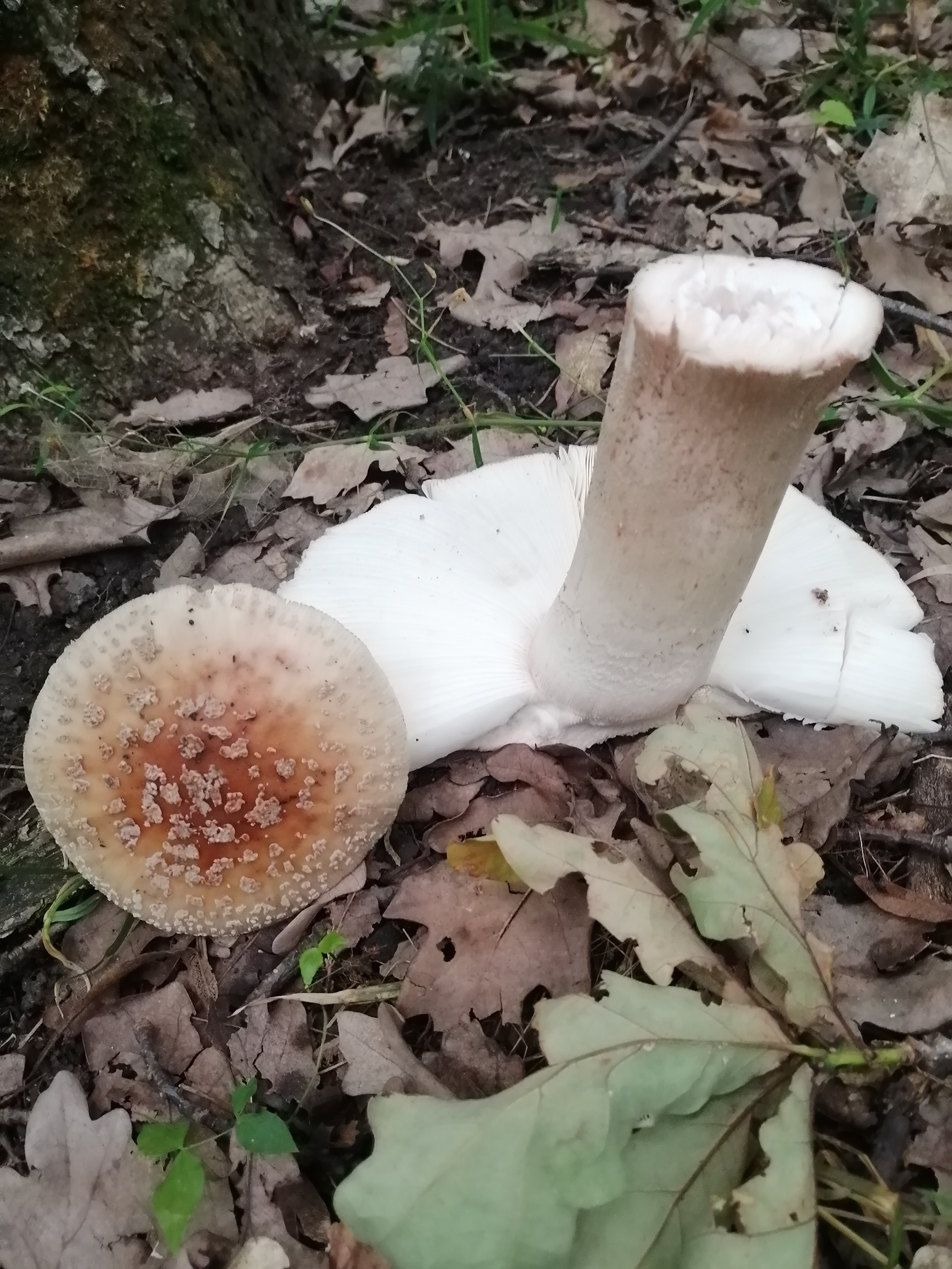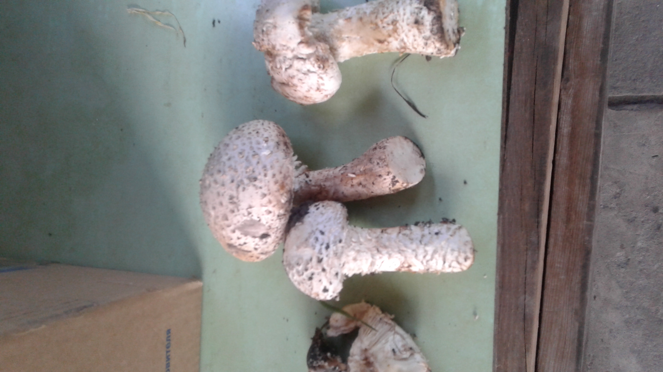 Похож на мухомор серо-розовый. Хоть и условно съедобный - выкинь и не рискуй.