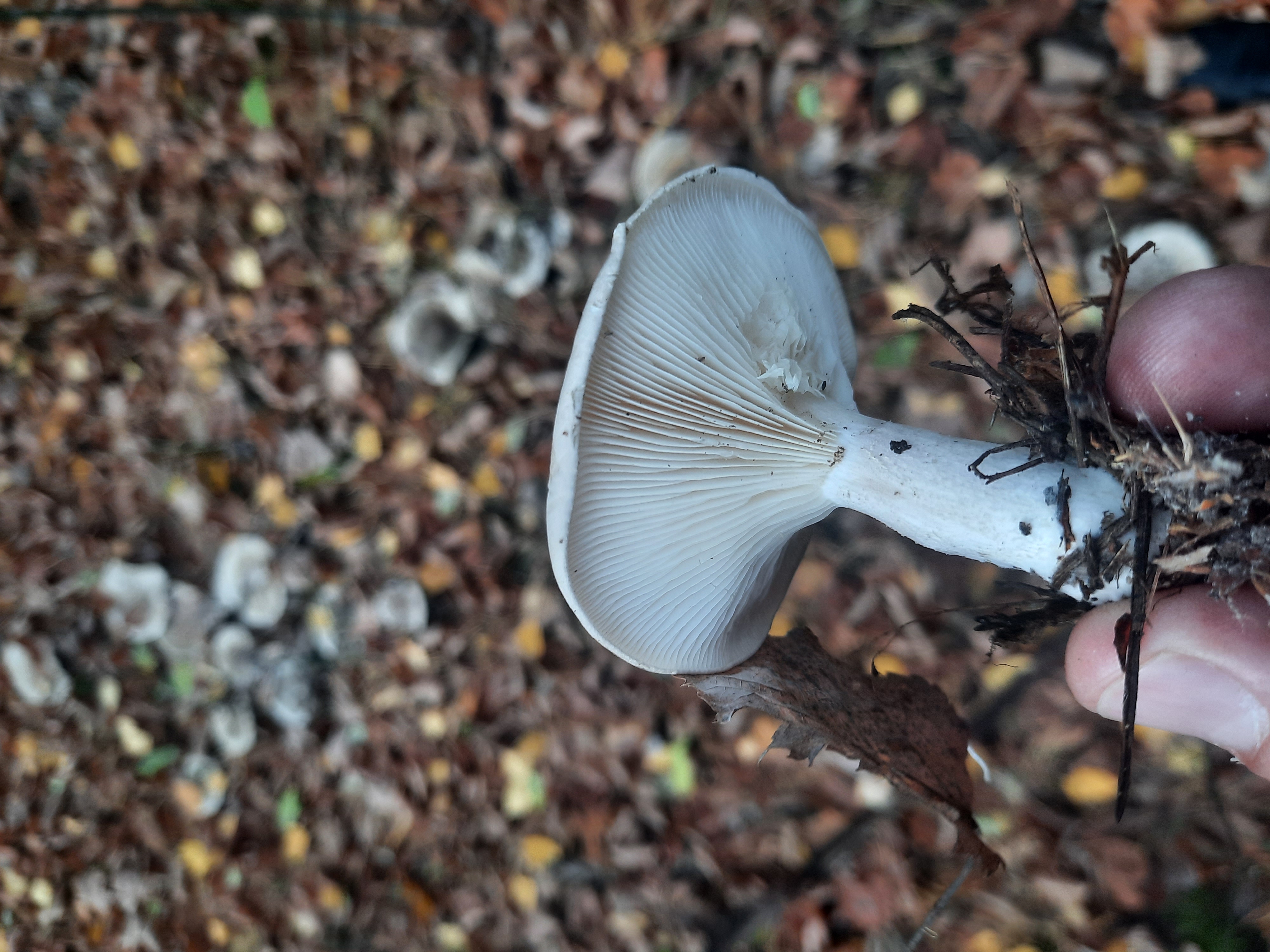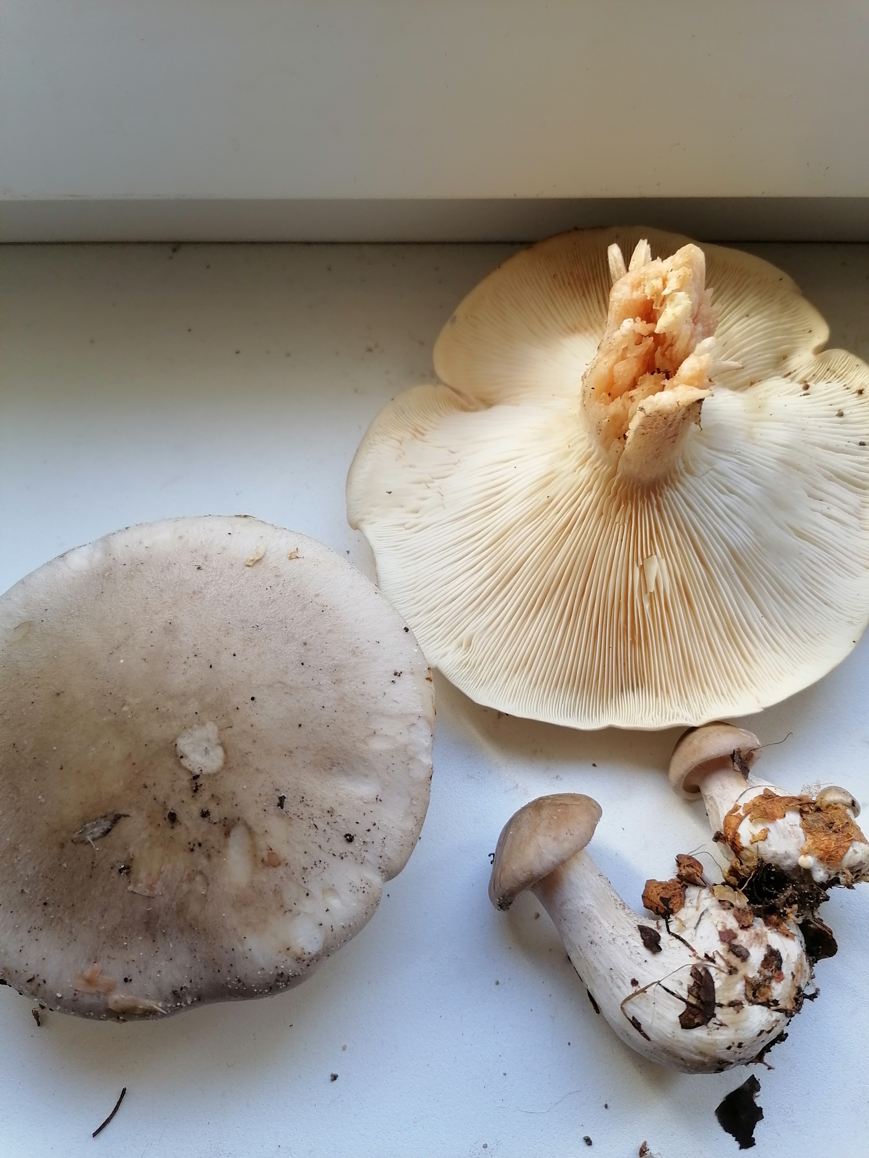 Зы.. сегодня гриб встретил - не фоткал правда... Шляпка правильная, не вывернутая - см 8-10... как у рядовок среднего возраста.. ЧЁРНАЯ с белым окаймлением.. Пластинчатый, пластинки - светлорозовые.. без юбочки.. ножка прямая - относительно ровная, не конусная - см полтора-два в диаметре... ну до соплей интересно что это такое... ничего рядом в инете не нашел.. да и не особо ещё искал - если по чесноку...