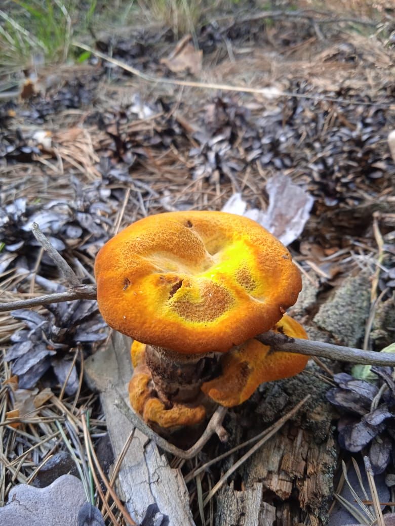 Евгений ТТ , ну, без снизу- сбоку оч. сложно + похоже,что гриб поражен гипомицесом (другим грибом)