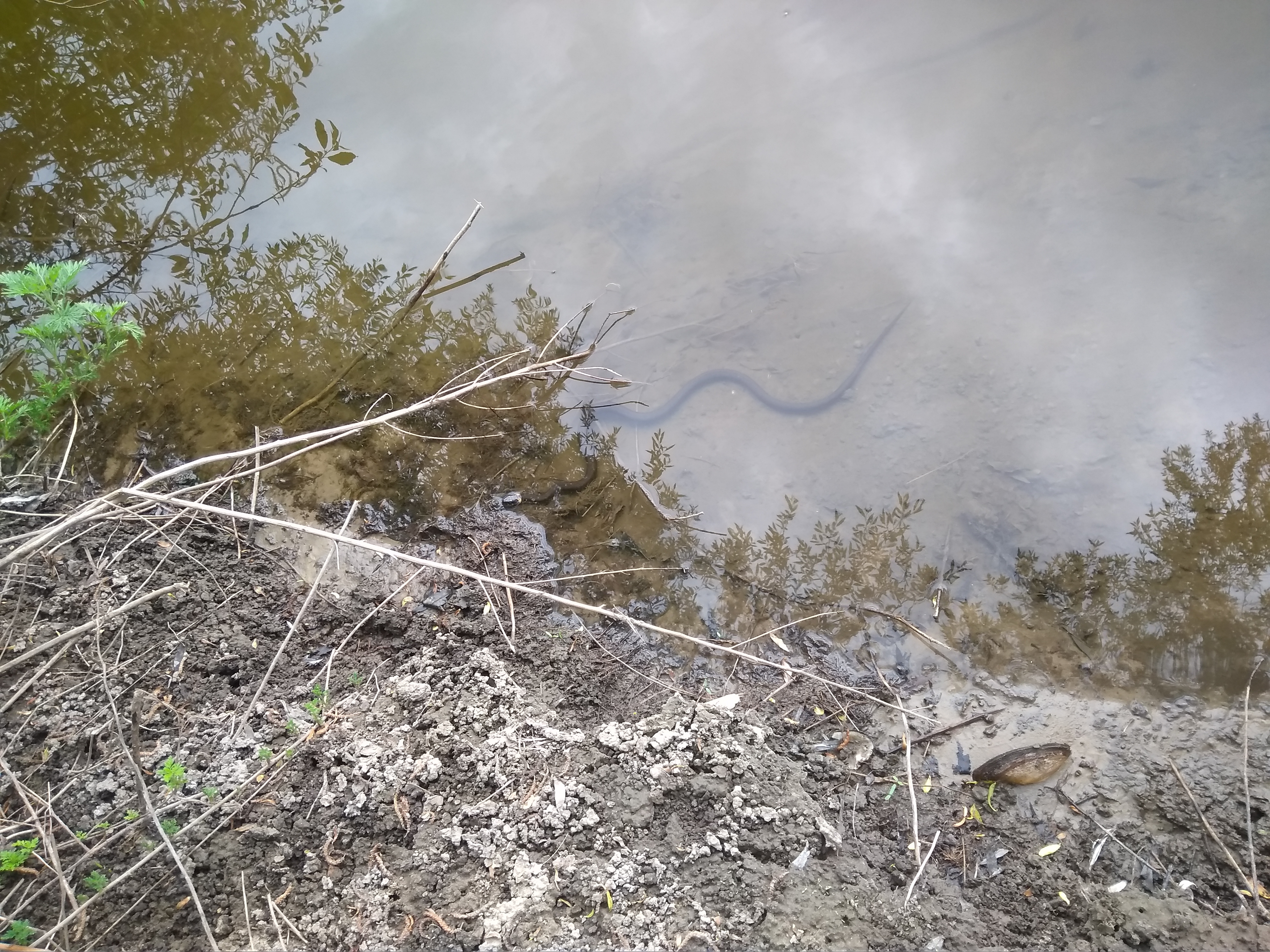 Потом время потребовалось, чтобы разобраться, куда забрасывать. Бровки нет, дно пологое, местами трава и прибрежные кусты.