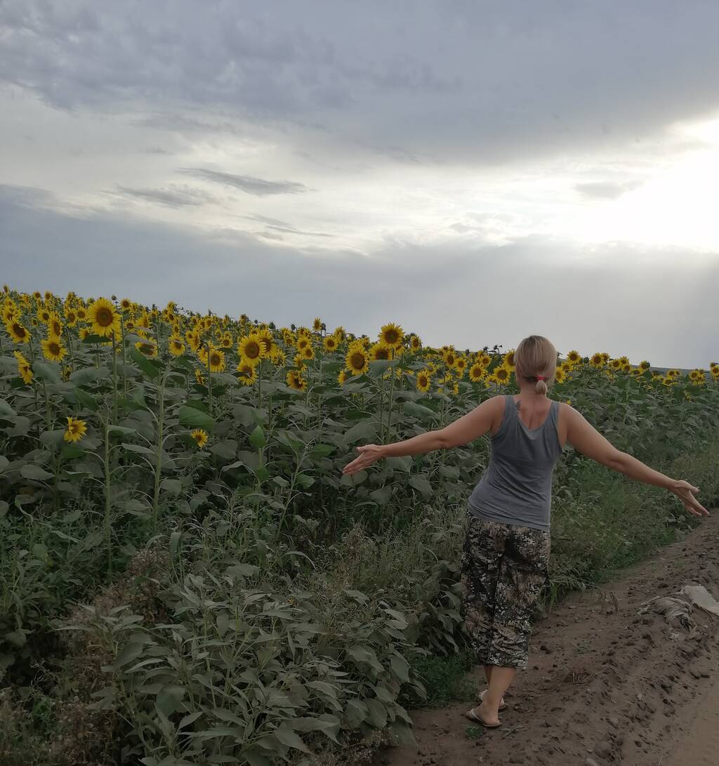 На обратном пути "а чо, у всех есть фотки с подсолнухами, а у меня нет"))