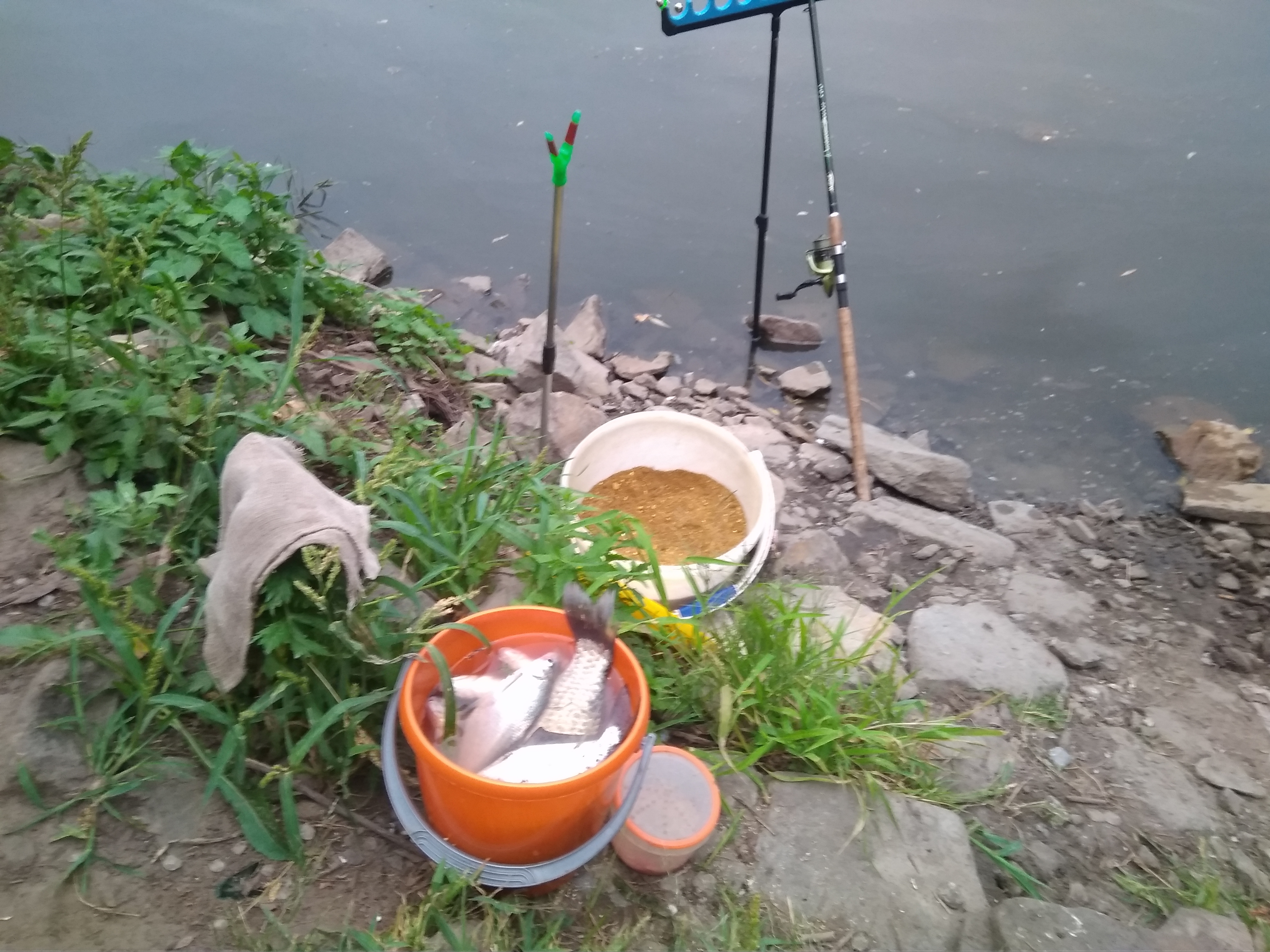 Решил сегодня пополнить запасы. Чтобы не обломаться с занятым перспективным местом, лодка в помощь. Дождь иногда нагонял тоску, но клюющая рыбка ее прогоняла прочь. Да и по соседству рыбачил Виктор Иваныч (не Фанат, но тоже профи). За душевным разговором было нескучно. По рыбе: с рассвета и до 9 утра ведро бели и бонусом караси.
