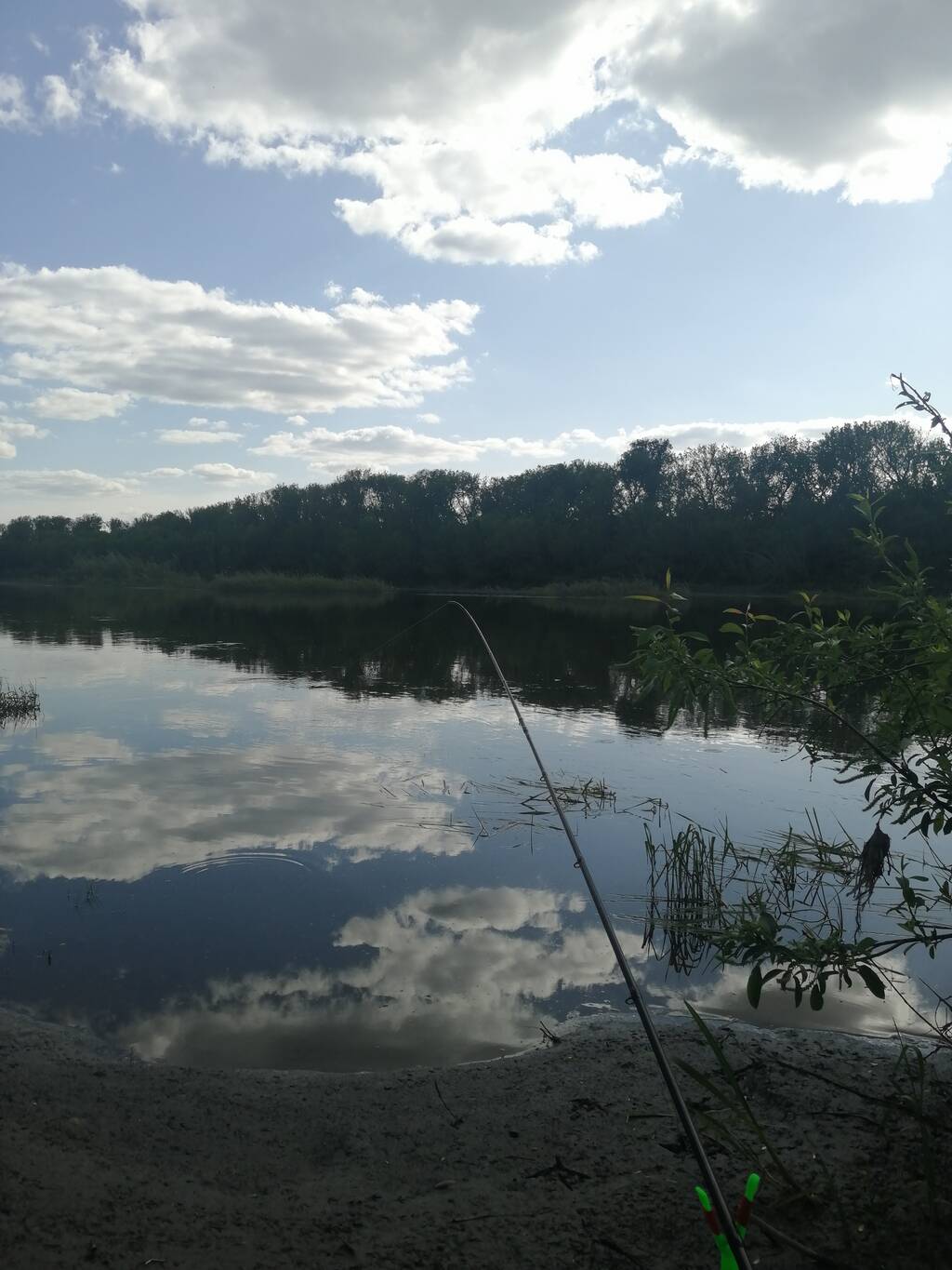 Добравшись до места, обнаружил практически пустой берег. Лишь под тенью нависающей ивы сидел одинокий пожилой рыбак и грустно следил за неподвижным колокольчиком на «шпиле» донки.