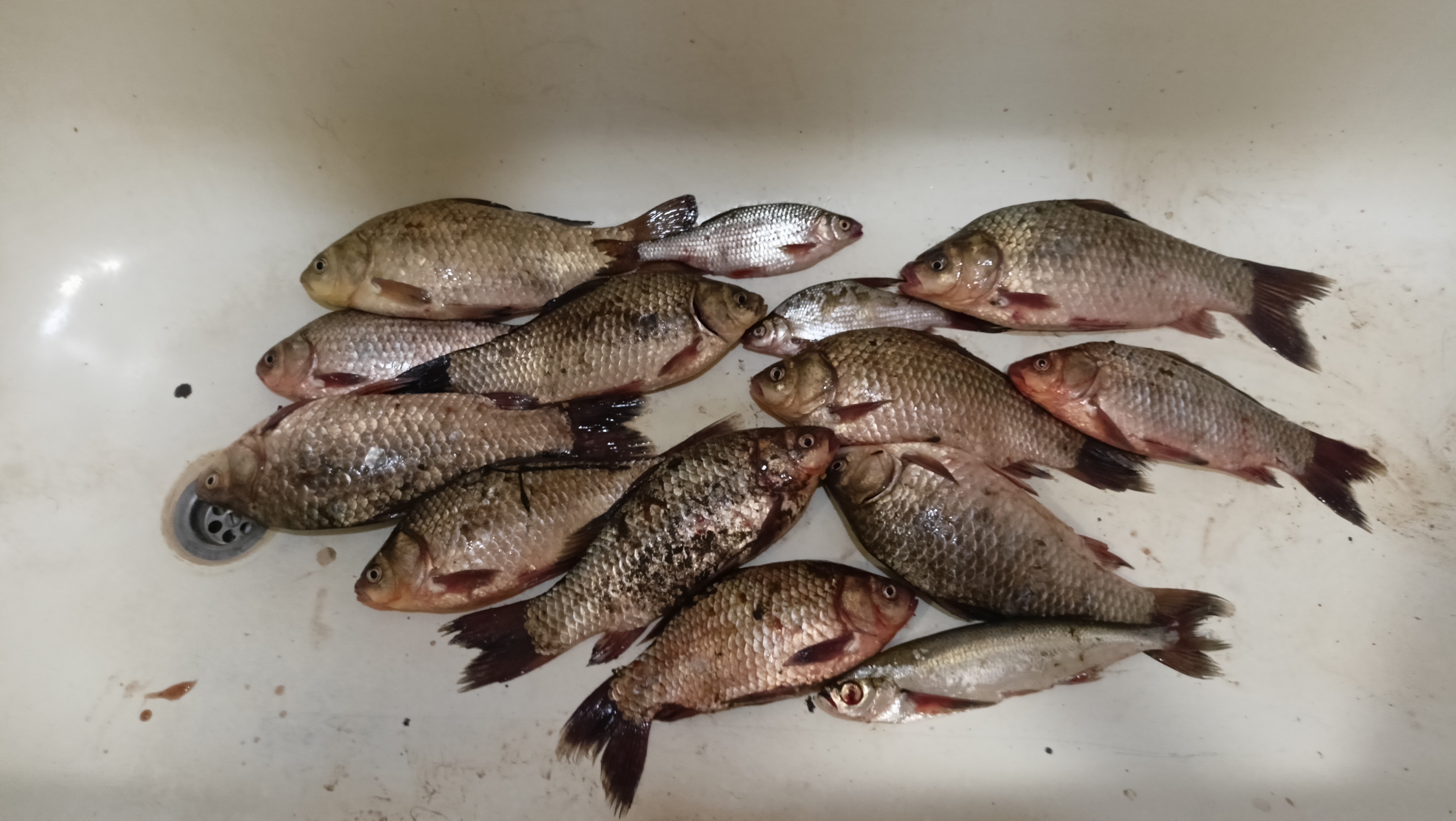 Примерно в шестом часу вечера первые кормушки полетели в воду. На столе сразу же обосновалась мелкая густера и рыбец. Спустя минут 20, точка немного затихла и постепенно стала приносить вперемежку с другой рыбой и первых карасей, при чём некоторые были абсолютно не донского размера, грамм по 100, я таких в реке никогда не ловил.