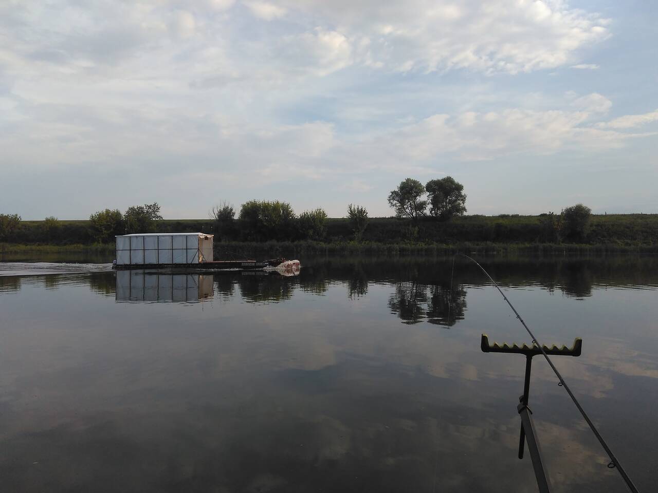 Ближе к вечеру откуда-то из-за спины наползла здоровенная чёрная туча, гонимая по степи резкими порывами ветра. Где-то вдалеке пару раз сухо треснула молния и над рекой «промчался» гулкий раскат грома. А потом пошёл дождь, а точнее – настоящий ливень, который продолжался минут 15, принеся с собой долгожданную свежесть и прохладу.