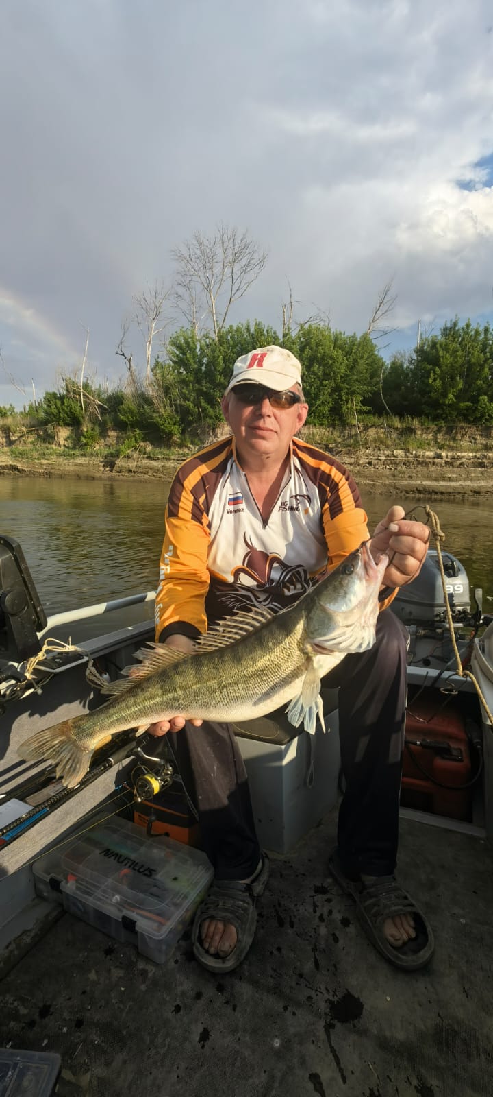 На кукане плавает , сейчас спросил , сам хозяин не фоткал , а я помог вытащить , просто ресел в свою лодку и поехал рыбачить ...