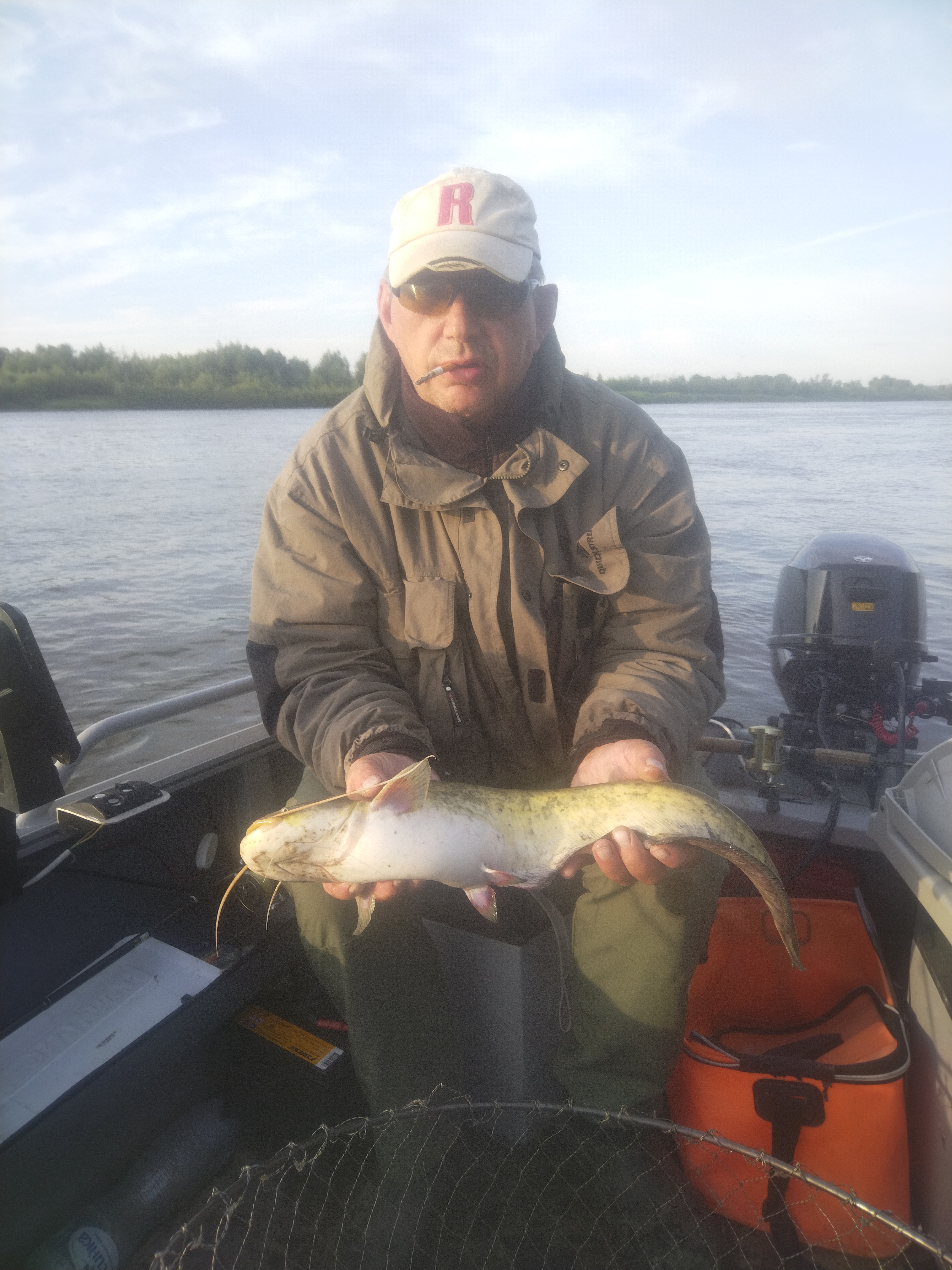 Сын сейчас , полтора часа боролся , сломал спин , сома к лодке подтащил всё-таки , но я не дотянулся подсачить , ушел , кил 40+ был ....