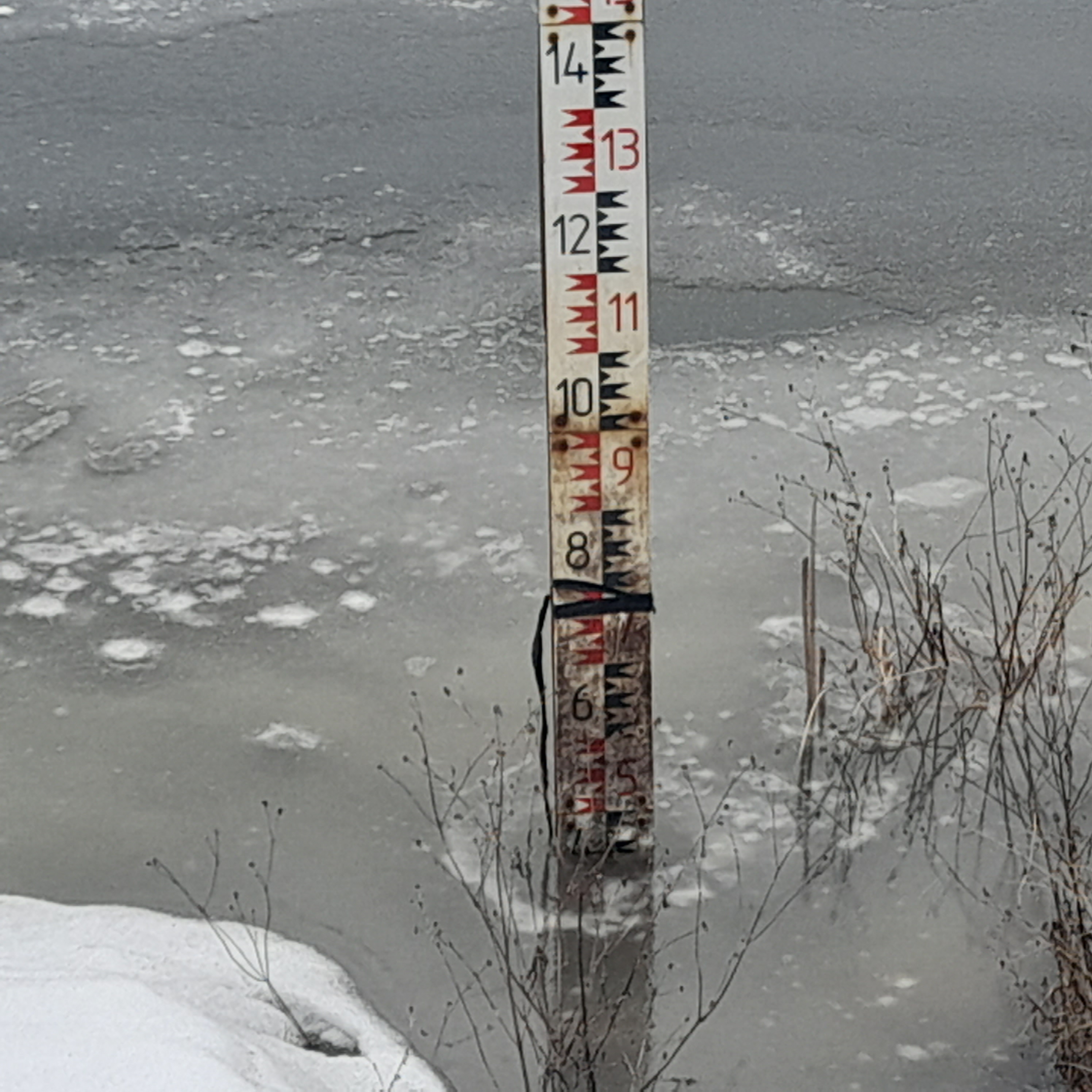 Ленточка черная на шкале привязана, это уровень подъёма воды за прошлый год?
