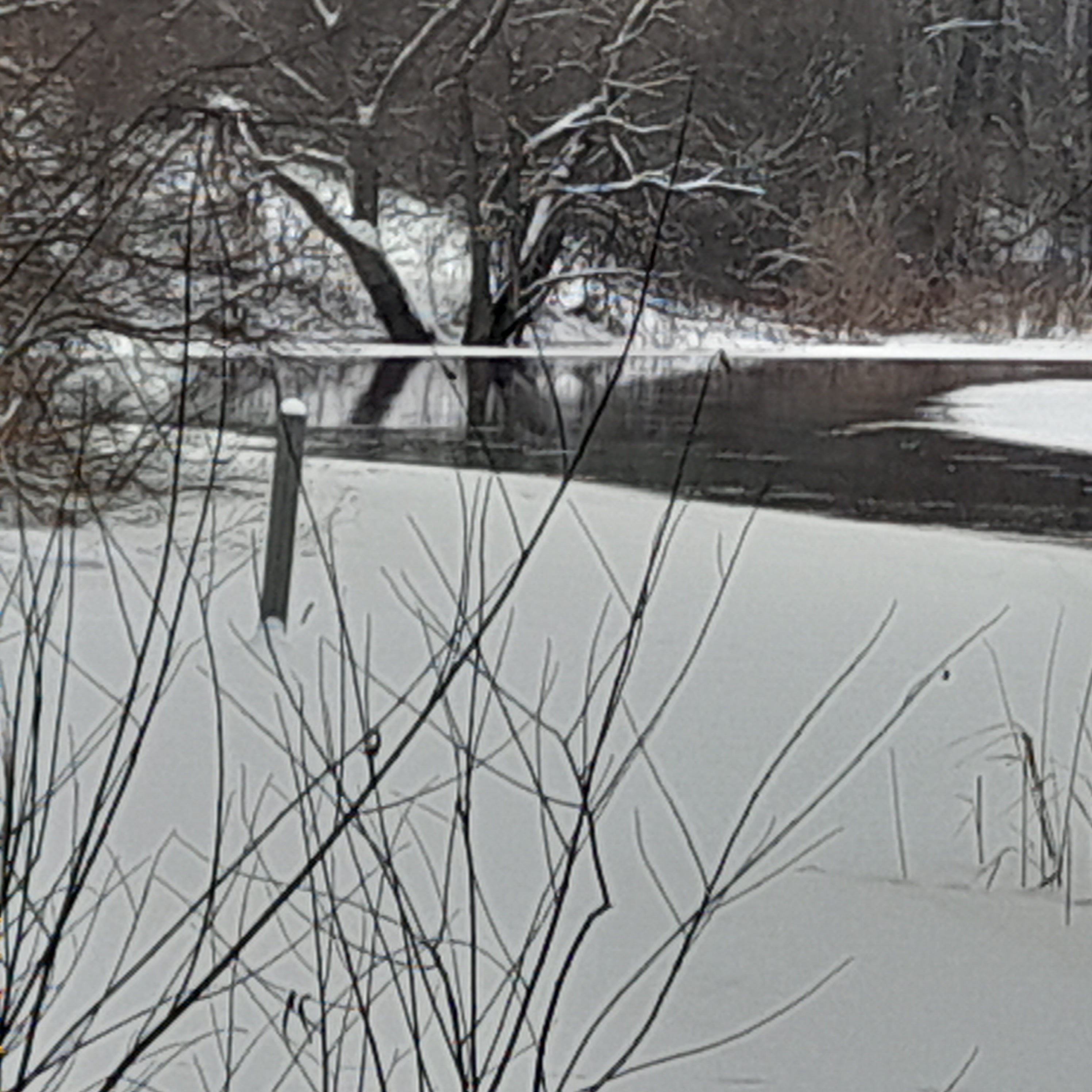 а сейчас метров на 150 от неё ниже по течению. Может, в февральскую оттепель вода выше поднималась?