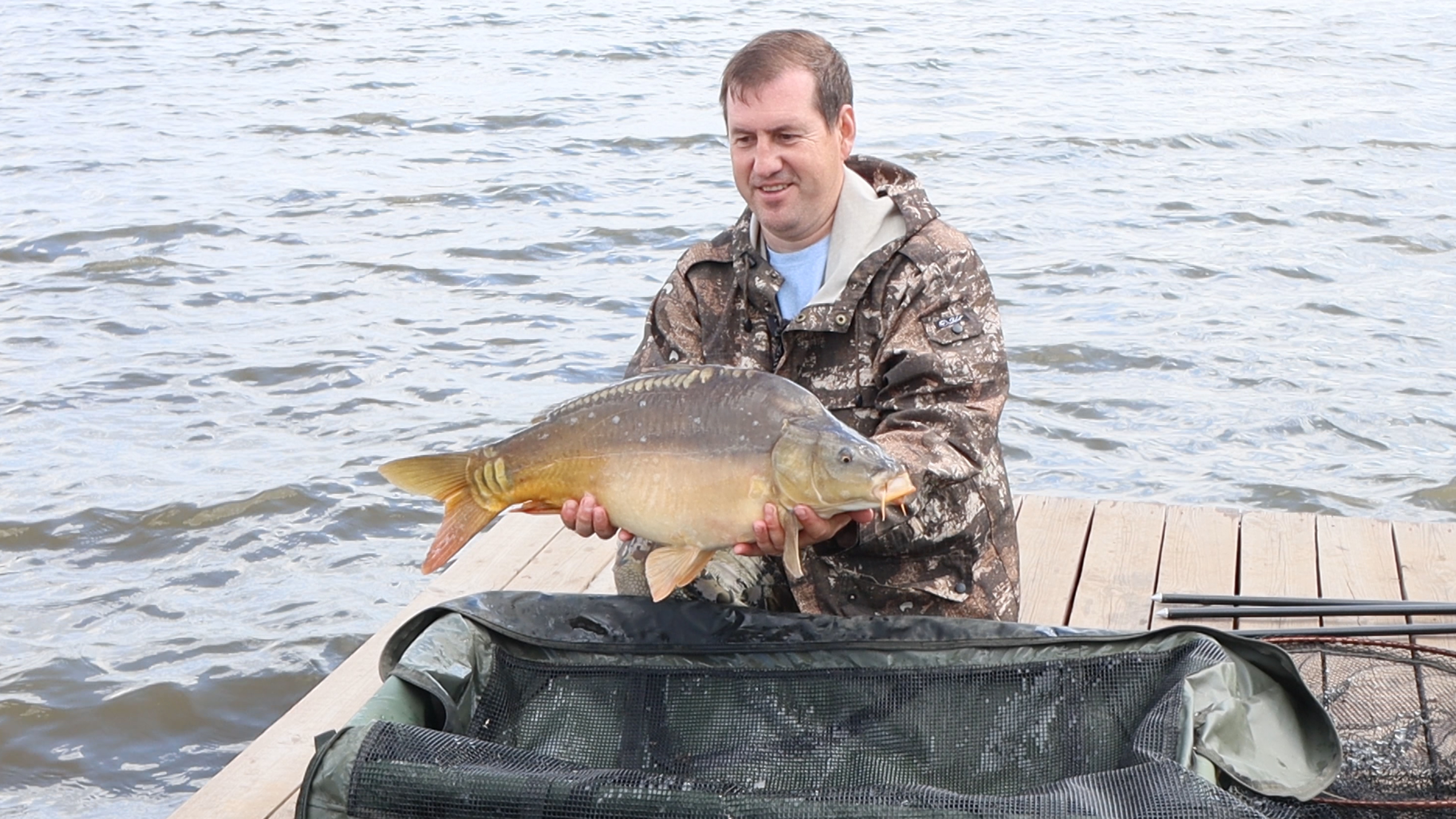 В 6:30 на дальней точке - зеркальный 6 кг. Тут же в 7:00 - зеркальный 7 кг. Только завели в подсак, и у меня на отдельно стоящем удилище - паровоз. Карп 9 кг